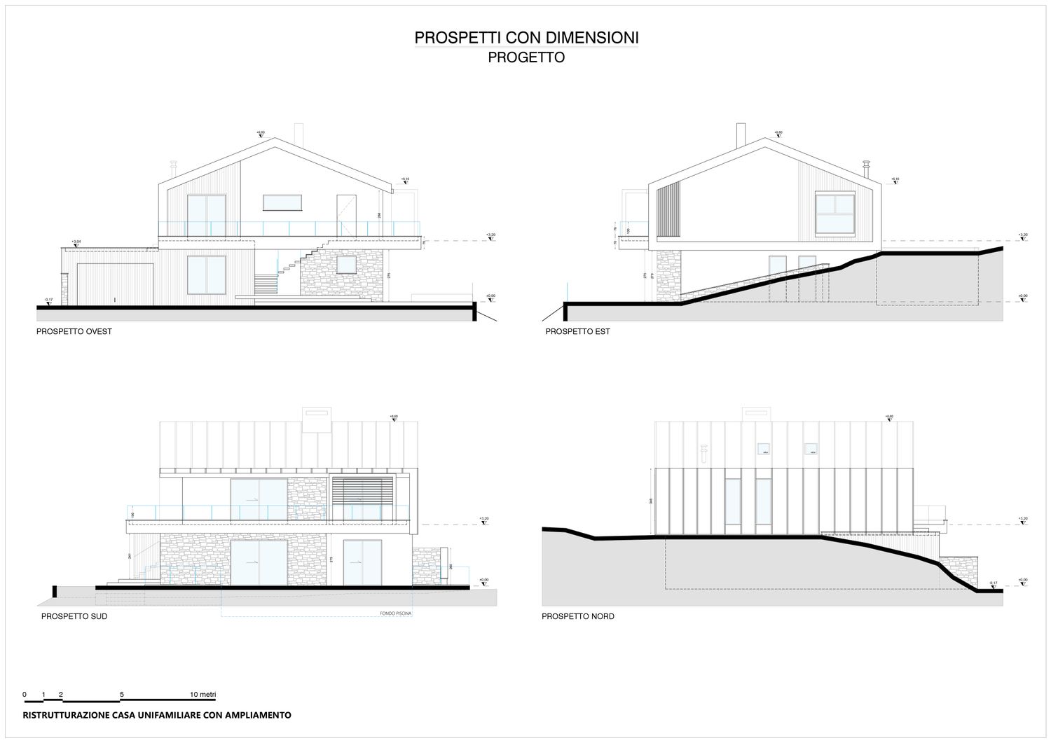 Il progetto di ristrutturazione con ampliamento di un’abitazione unifamiliare nasce dall’esigenza di valorizzare il rapporto privilegiato con la valle a sud e di reinterpretare in chiave contemporanea il linguaggio architettonico rurale tipico del territorio, integrando nuove funzioni e una distribuzione più efficiente. L’edificio esistente viene riletto attraverso un approccio essenziale e materico, capace di dialogare armoniosamente con il contesto agricolo circostante. La copertura a doppia falda, mantenuta come elemento identitario, è ripensata con un disegno pulito e materiali contemporanei.