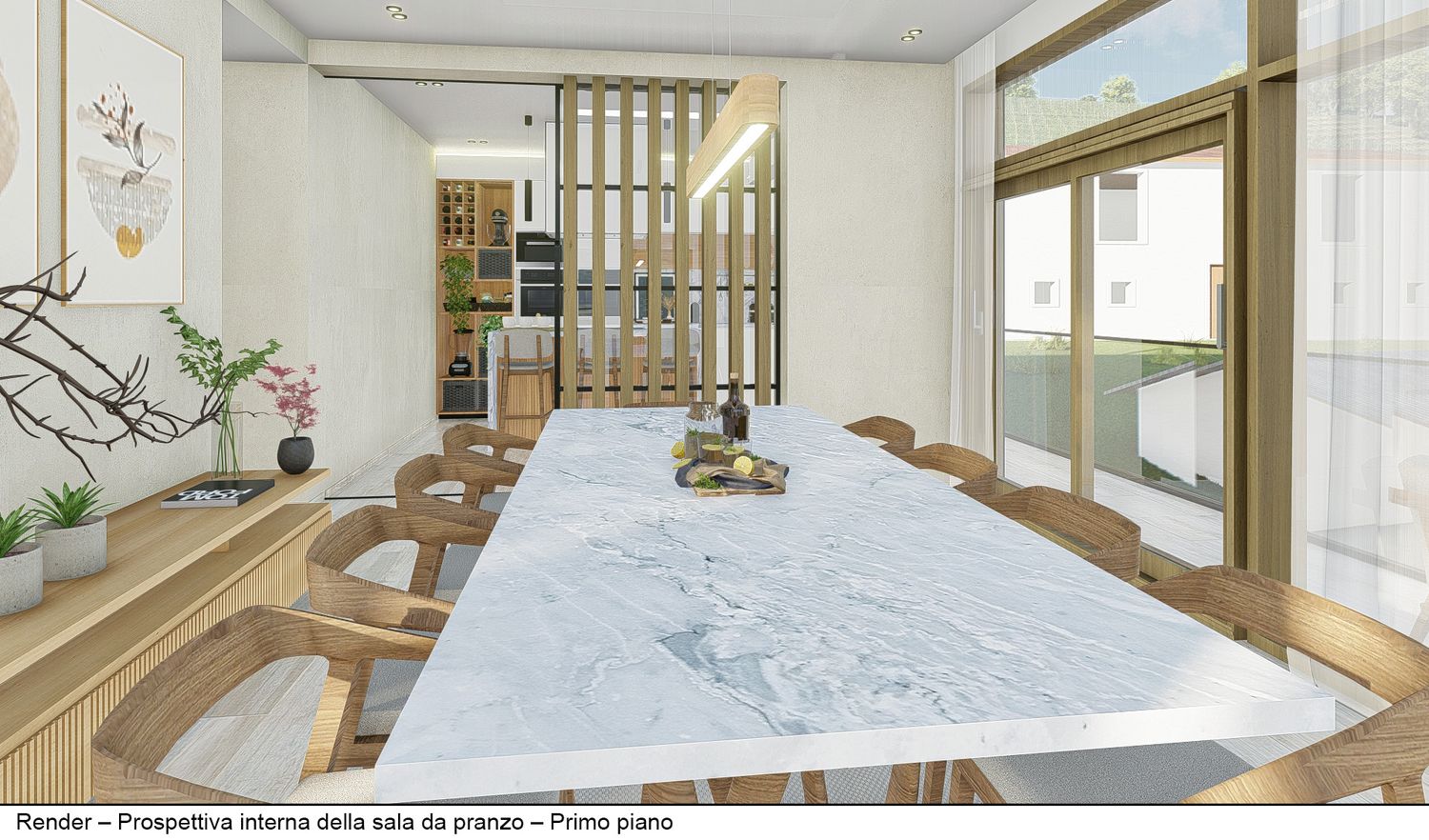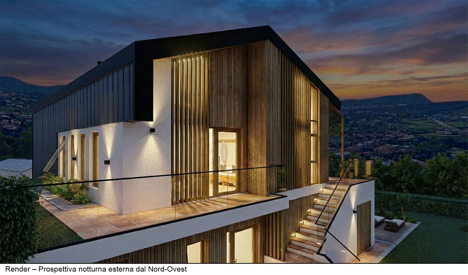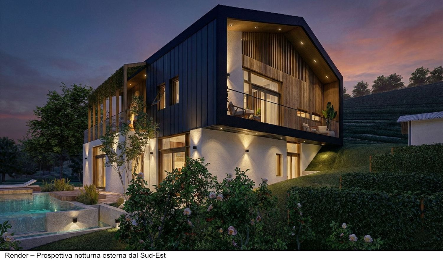 Infine, il progetto rispetta i limiti volumetrici, mantenendo praticamente invariato il volume fuori terra, che raggiunge un totale di 1.033,97 m³, all’interno del margine consentito rispetto ai 910 m³ esistenti. Il volume interrato del garage e del locale tecnico ammonta a 185,60 m³, ben al di sotto del limite del 40% previsto. Il risultato è un’abitazione che combina tradizione e modernità, con interni ampi, luminosi, caldi e funzionali, in cui ogni intervento rafforza l’armonia tra architettura, paesaggio e preesistenze.