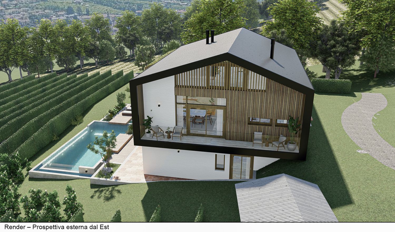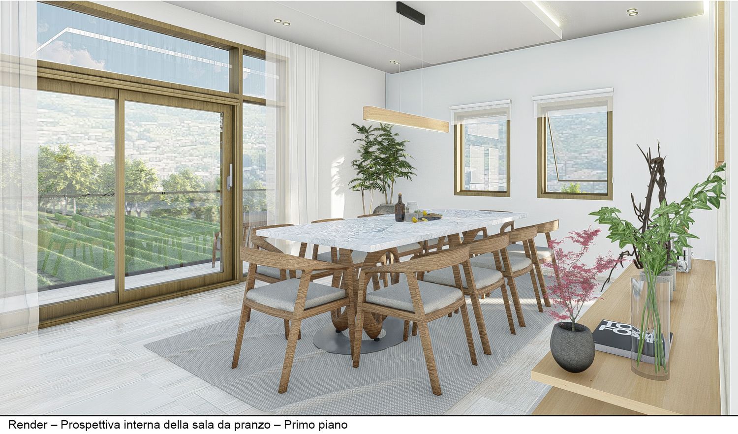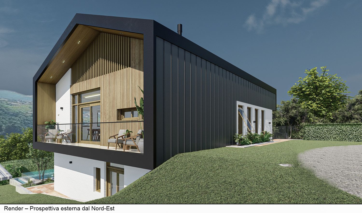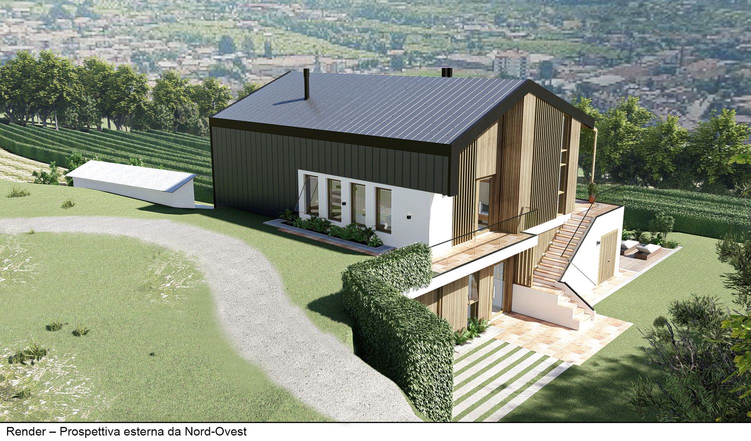 Infine, il progetto rispetta i limiti volumetrici, mantenendo praticamente invariato il volume fuori terra, che raggiunge un totale di 1.033,97 m³, all’interno del margine consentito rispetto ai 910 m³ esistenti. Il volume interrato del garage e del locale tecnico ammonta a 185,60 m³, ben al di sotto del limite del 40% previsto. Il risultato è un’abitazione che combina tradizione e modernità, con interni ampi, luminosi, caldi e funzionali, in cui ogni intervento rafforza l’armonia tra architettura, paesaggio e preesistenze.