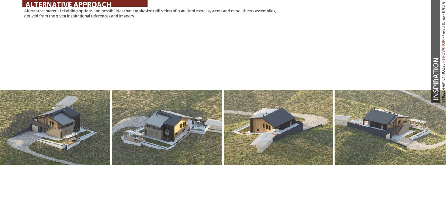 The design is inspired by contemporary Nordic architecture from Scandinavia, particularly its minimalist, refined language and clean, understated expression. Particular emphasis has been placed on the use of locally sourced materials from the Quartier del Piave area in Treviso, Italy, ensuring contextual relevance and material authenticity. The façade design is conceived to integrate naturally and harmoniously with the surrounding built environment. While the proposal slightly deviates from the reference images you provided, this approach was made to achieve better contextual integration ensuring the façade blends seamlessly with its environment. That said, alternative façade options incorporating metal sheets and panel cladding systems—consistent with your original references—have also been included for your consideration.