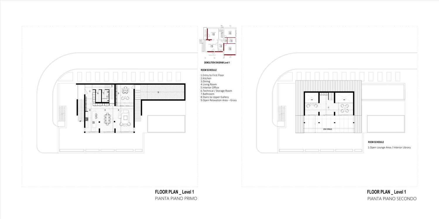 The first floor features an expansive living and dining environment accompanied by a dedicated internal office. This workspace opens to an elevated grassed relaxation area, which in turn shelters the outdoor dining and kitchen space adjacent to the pool on the ground level.