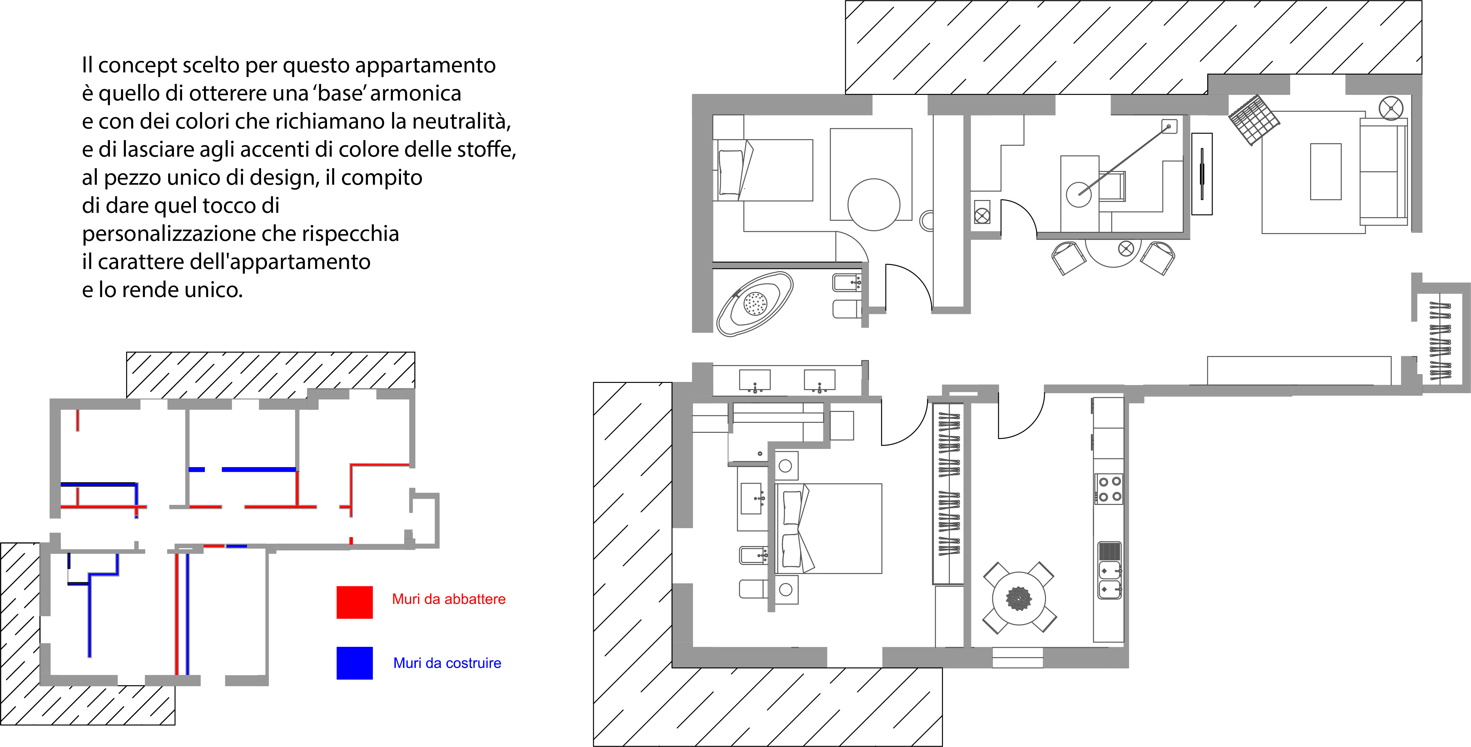 Obiettivo: Ristrutturazione completa appartamento (115 mq) per una famiglia composta da 2 adulti e figlia (11 anni)