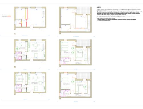 7- Entrambi i bagni necessitano di una miglior disposizione (doccia e vasca preferite, ma in caso anche 2 docce sarebbero accettabili); in caso la terza stanza fosse ricavata al piano superiore, anche il mezzo bagno sarebbe accettabile al piano inferiore.