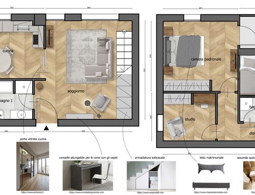 5- Mi piacerebbe un angolino PC che non sia in piena vista (nella zona giorno o in camera matrimoniale), ma questo sarebbe solo un "nice to have";