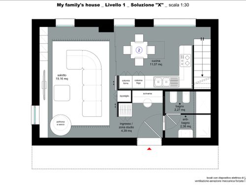 Salve, mi chiamo Gabriele e cerco un progetto per una famiglia di 4 persone (con 2 bambini di 1 e 3 anni); momentaneamente non necessitano di una camera ciascuno, ma in futuro vorrei avessero i propri spazi (che nel frattempo potrebbero essere utilizzati come stanza dei giochi). Necessito quindi di una configurazione versatile che nel tempo consenta di trasformazioni; i miei obiettivi sono: