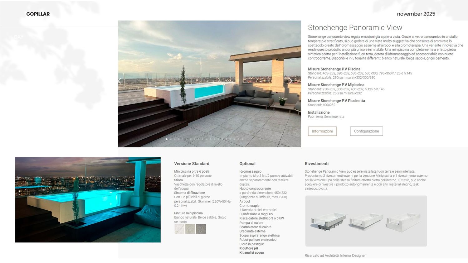Il cuore del progetto è l'inserimento di una moderna vasca, ideale per rinfrescarsi o per godere di un momento di relax di una Serra Solare e Area Fitness Coperta