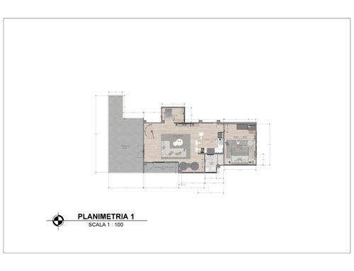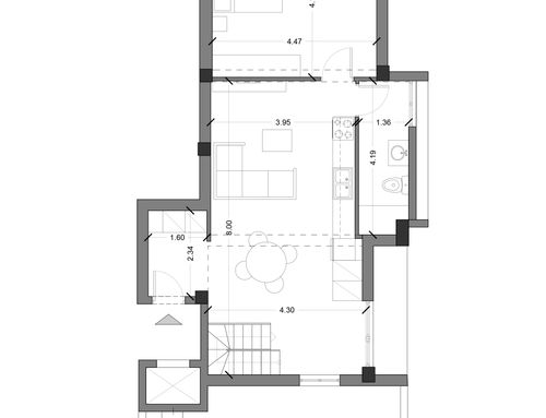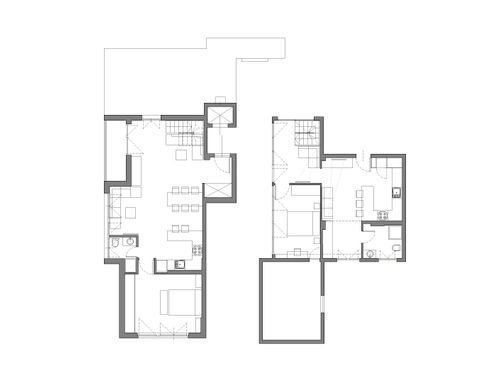 The idea we're pursuing is to design, on the lower floor, a master bedroom, an open-plan kitchen, a bathroom, and a living area.