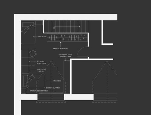 1-Room located on the second floor of a two-story house, with a ceiling with exposed beams that we are already planning to whiten. We would like to create a bedroom: well lit where you can play, study, to exhibit your set of Lego mounted. We thought in fact to tie the room to Lego (batman spiderman and his favorite deadpool) and give him space to build the new sets. In the future, however, we would like to keep the possibility of making our sister sleep (she has 3 months now) in the same room, not having to spend too much money on the changes. The exposure to the north does not help but the room does not seem very dark just that it does not currently have many highlights. We are going to do some work so we can make changes. Often grandparents and friends come to sleep at home so there must also be a second bed. We have enough urgency since the work has begun.