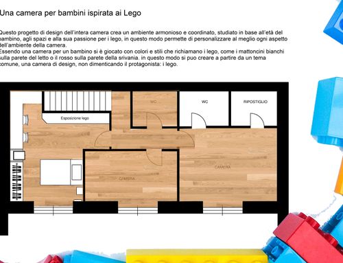 1-Stanza situata al secondo piano di una casa di due piani, con soffitto aventi travi a vista che abbiamo già intenzione di sbiancare. Vorremo creare una cameretta : ben illuminata dove possa giocare, studiare, poter esporre i suoi set di Lego montati. Pensavamo infatti di legare la cameretta ai Lego (batman spiderman e deadpool i suoi preferiti) e dargli spazio per costruire i nuovi set. In futuro vorremo comunque tenere la possibilità di far dormire anche la sorella (ha 3 mesi ora) nella stessa cameretta non dovendo spendere troppo per le modifiche. L'esposizione a nord non aiuta ma la camera non sembra molto scura solo che non ha al momento tanti punti luci. Stiamo per fare dei lavori quindi possiamo fare modifiche. Spesso vengono nonni ed amichetti a dormire a casa quindi ci deve essere anche un secondo letto. Abbiamo abbastanza urgenza visto che i lavori sono iniziati.