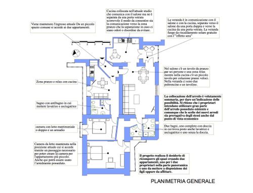 Mi piacerebbe trasferire la cucina dove attualmente c'è lo studio perché accede alla veranda che si potrebbe aprire di nuovo e diventa un balcone e riaprire il vano sul salone che adoro perché ha una vista bellissima e che vorrei ancora utilizzare come salone/living; a questo punto però non so dove fare la camera da letto e il bagno.