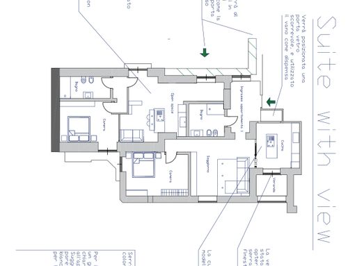 En vista de una renovación, me gustaría entender si mi idea es factible dado que mi marido y yo nos quedamos (nuestros dos hijos viven fuera de Nápoles) y es redistribuir la casa para que los dos podamos vivir cómodamente en la panorámica. parte y posiblemente alquilar la otra parte para alquileres a corto plazo o simplemente usarla para alojar a nuestros niños cuando vengan a Nápoles.