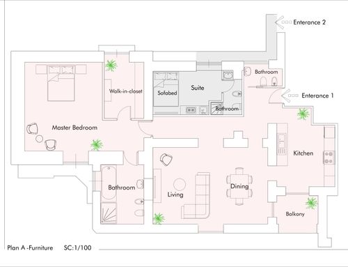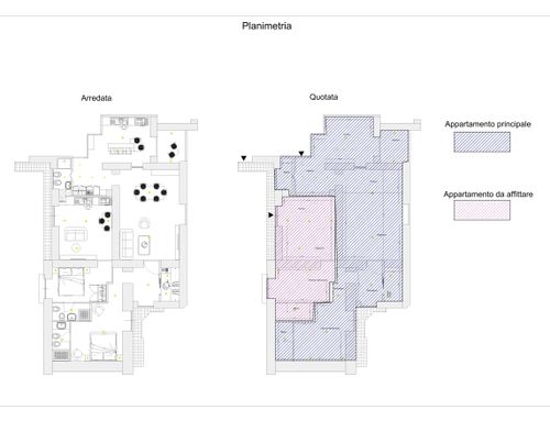 In view of a renovation I would like to understand if my idea is feasible given that my husband and I are left (our two children live outside Naples) and that is to redistribute the house so that the two of us can live comfortably in the panoramic part and possibly rent the the other part for short term rentals or simply use it to host our children when they come to Naples.