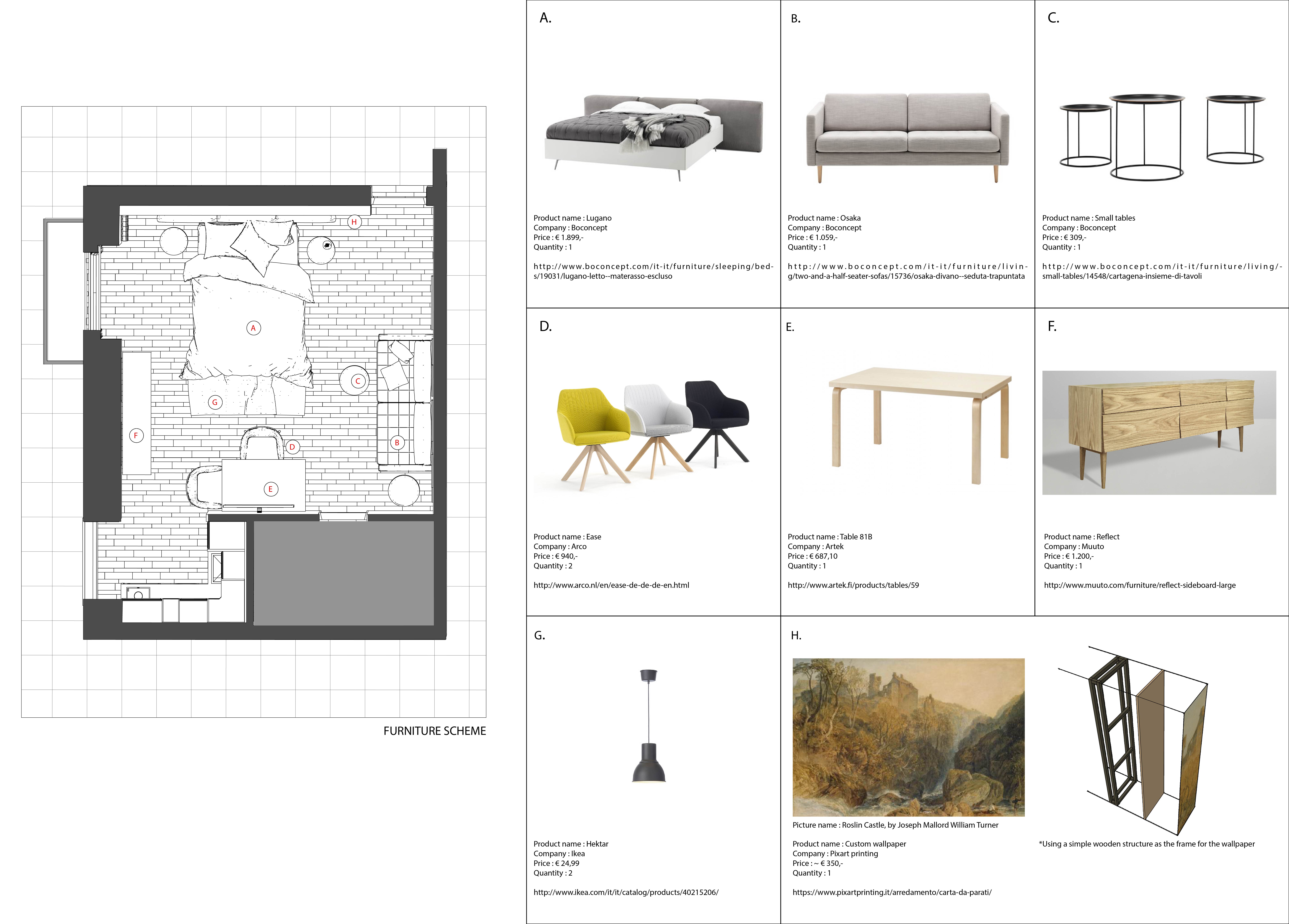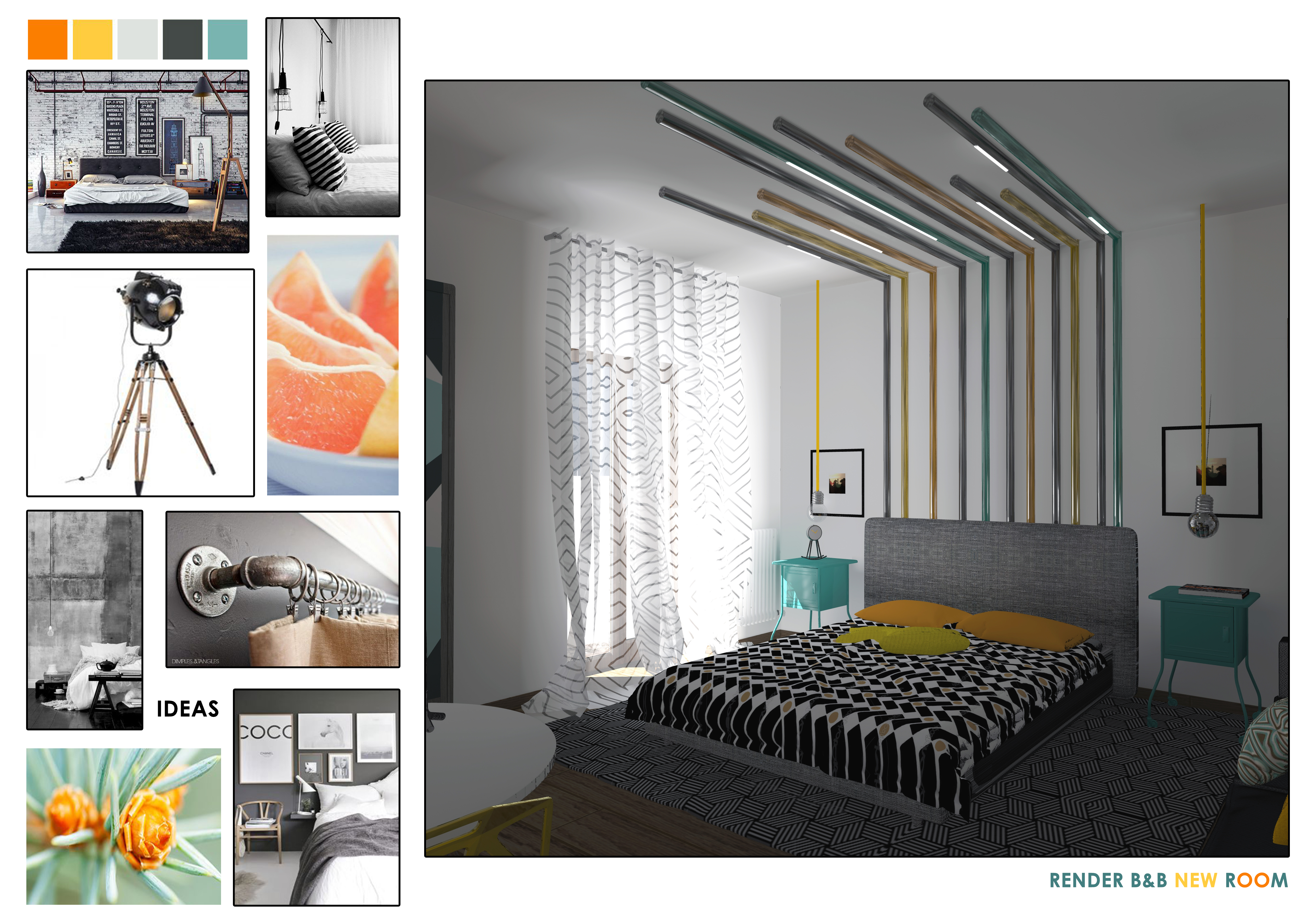 L'obiettivo e' la creazione della 4rta stanza in un B&B gia' esistente. Ci sono 3 stanze arredate con stili diversi: Barocca, Medievale e Anni 70. Ho bisogno di un'idea di stile per questa 4rta stanza. Il modero va molto o qualcosa di nuovo, di design, in modo da rendere questa nuova stanza la 'suite' piu' costosa di tutto il B&B.