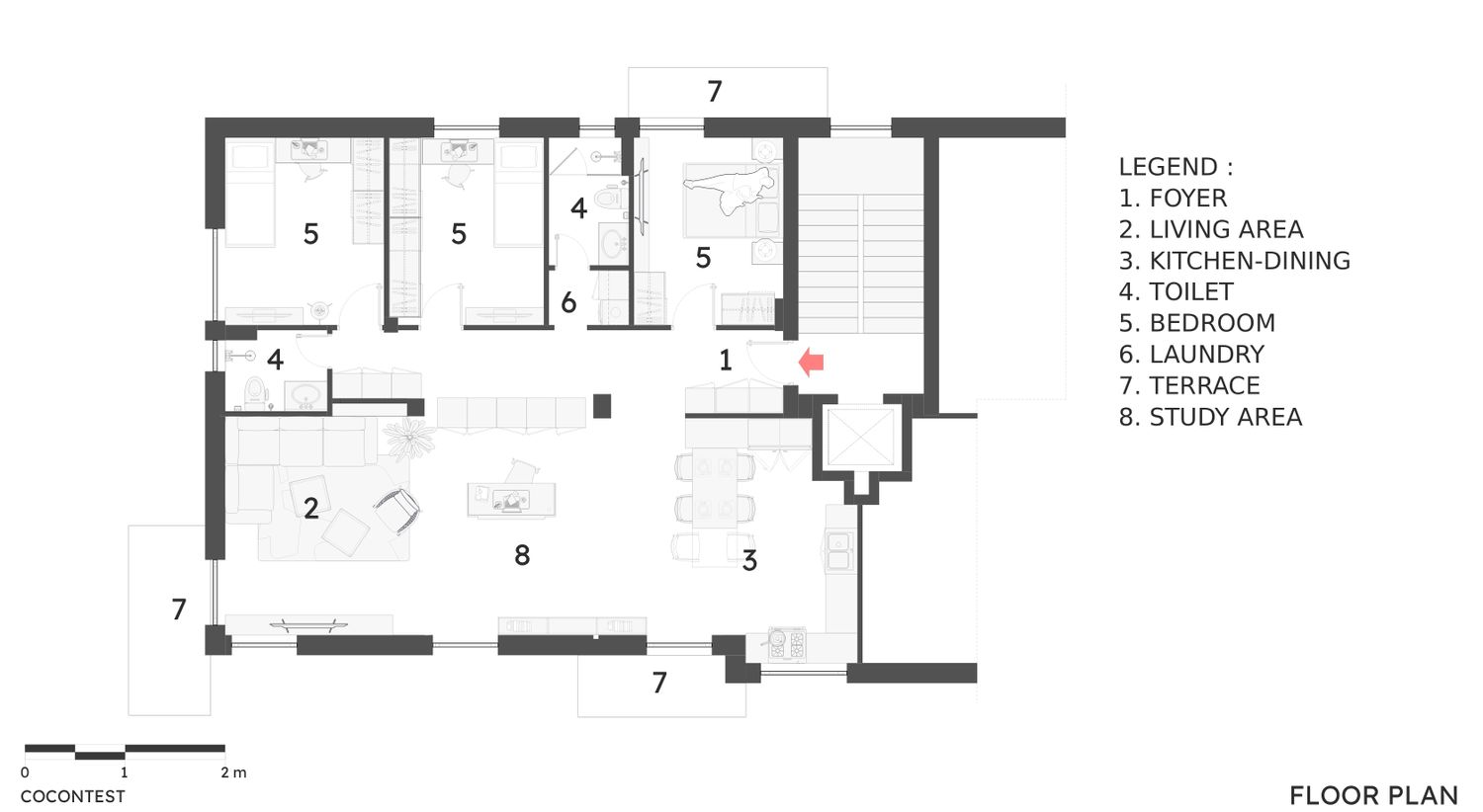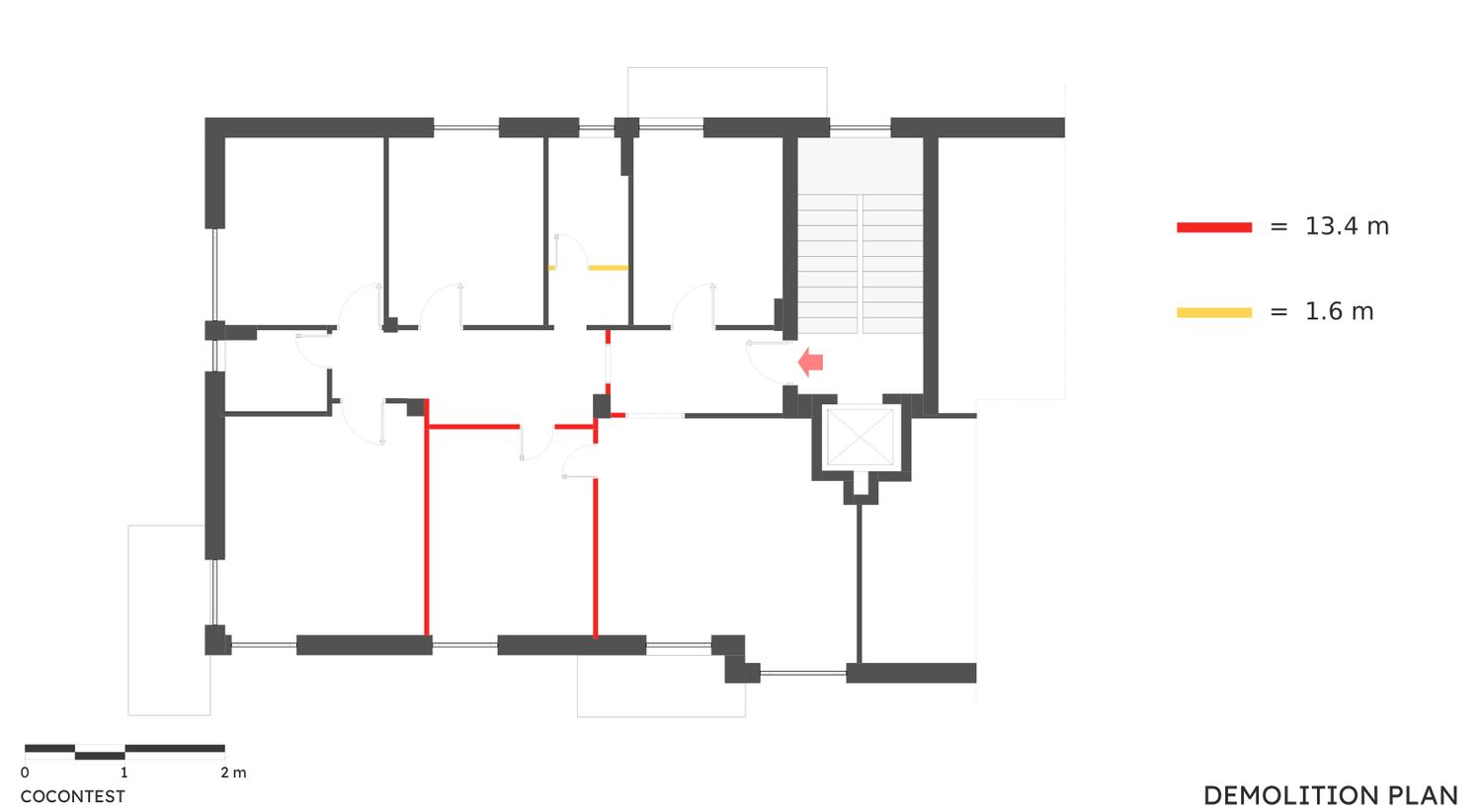 Using as many old walls and unnecessary walls were demolished to achieve the desired spatial program.