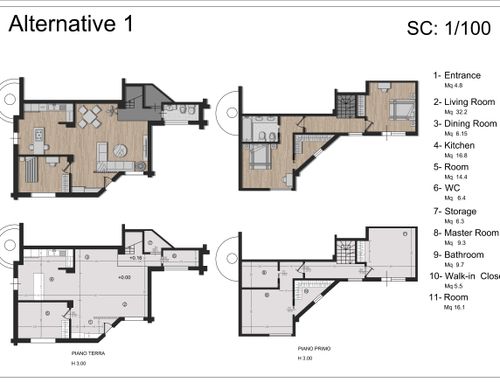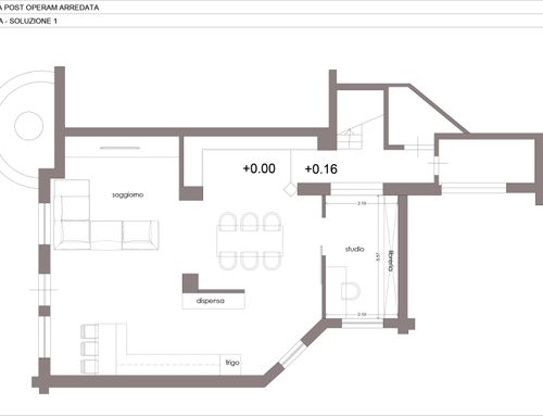 calpestabili. Mi servirebbe vedere “come potrebbe essere” l’ambiente che vivo in maniera realistica. In sintesi mi servirebbero: ricavare una cabina armadio; aggiungere un cucinino di servizio magari adiacente la cucina dato che vorrei un open space; allargare il bagno del piano superiore; rivedere l'ingresso dato che dove è la porta attualmente non va bene in quanto mi servirebbe uno spazio dove mettere un riponi-scarpe o un piccolo armadio e non vorrei che la porta fosse addossata al divano. Sempre vicino l'ingresso c'è quello che rimane di un vecchio elemento in muratura, un "cubo" di cemento che vorrei eliminare.
