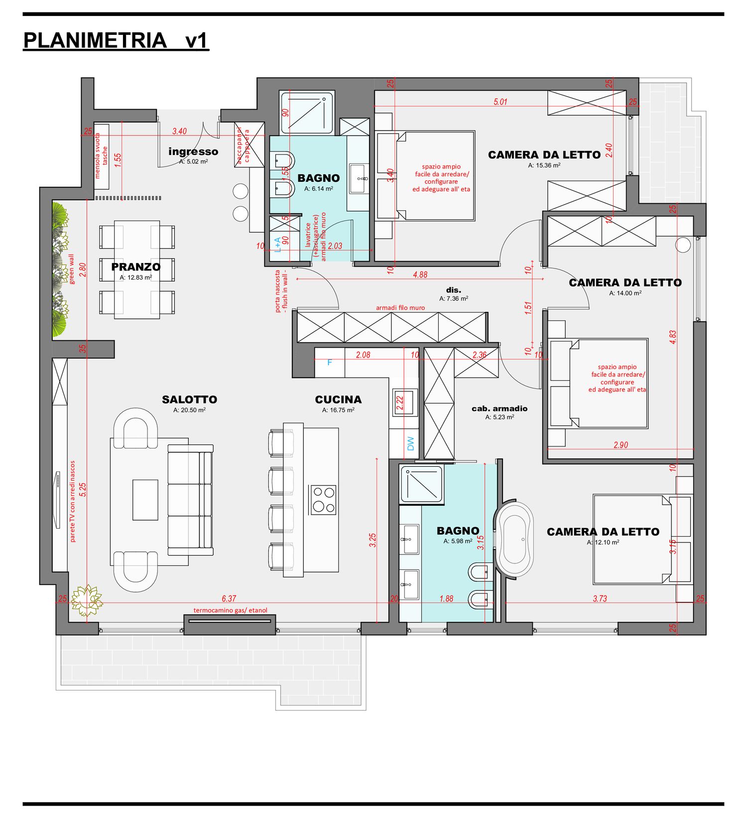Gli spazi sono stati concepiti per poter essere reinterpretati con facilità: le camere doppie, attualmente arredate con letto matrimoniale, possono essere adattate a camere per bambini; la cabina armadio della suite matrimoniale prevede varianti di sviluppo; la zona wellness integra soluzioni alternative (vasca freestanding in camera o nel bagno).