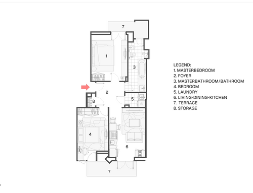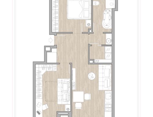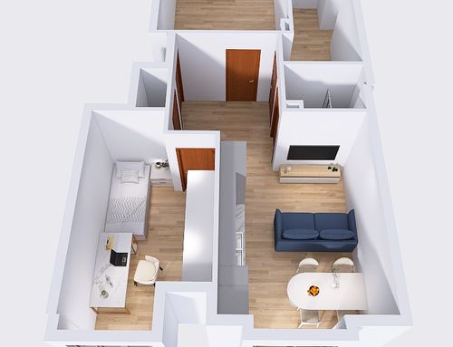 - the layout is intended for one or two people (as a couple or potentially in shared living);
