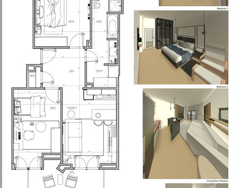 - transform the current living room into a single open-plan day area with an integrated kitchen, to take advantage of the larger room;