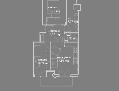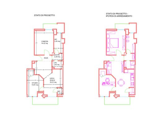 - destinare il secondo bagno interno (quello più piccolo) a locale doccia/lavanderia, eliminando il WC.