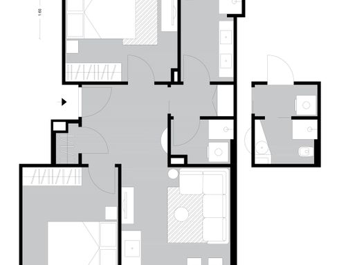 in case of shared living, a possible future option could be to reorganize the WC area together with the main bathroom; however, this is out of scope for the present project.