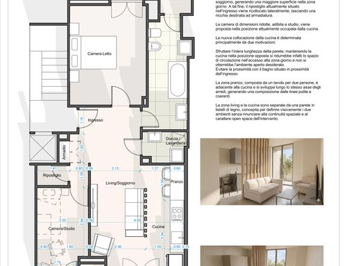 - remove the door between the entrance and the living room to create a more open access to the day area;
