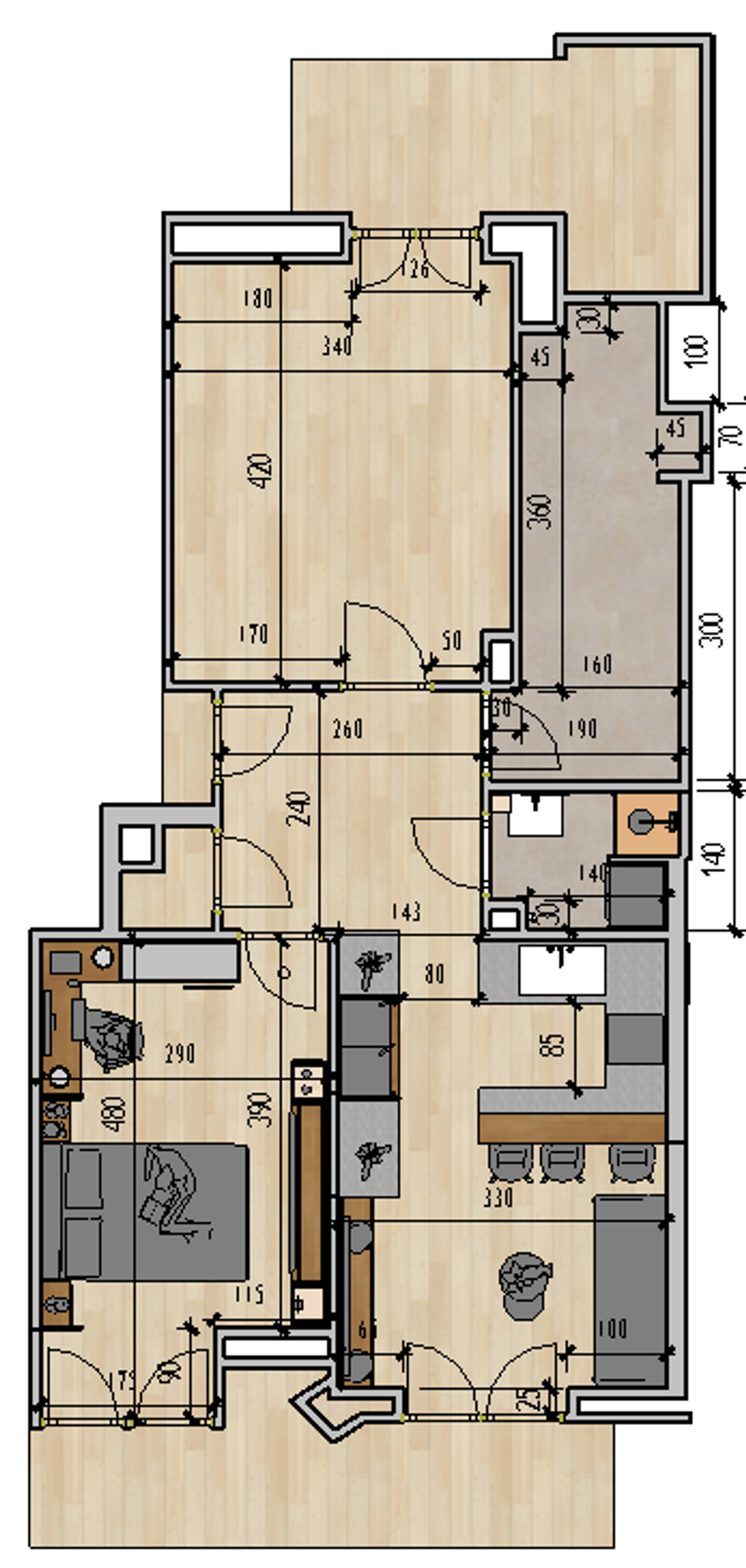 The proposed design successfully meets the Your objectives and significantly improves the overall functionality and spatial quality of the apartment.