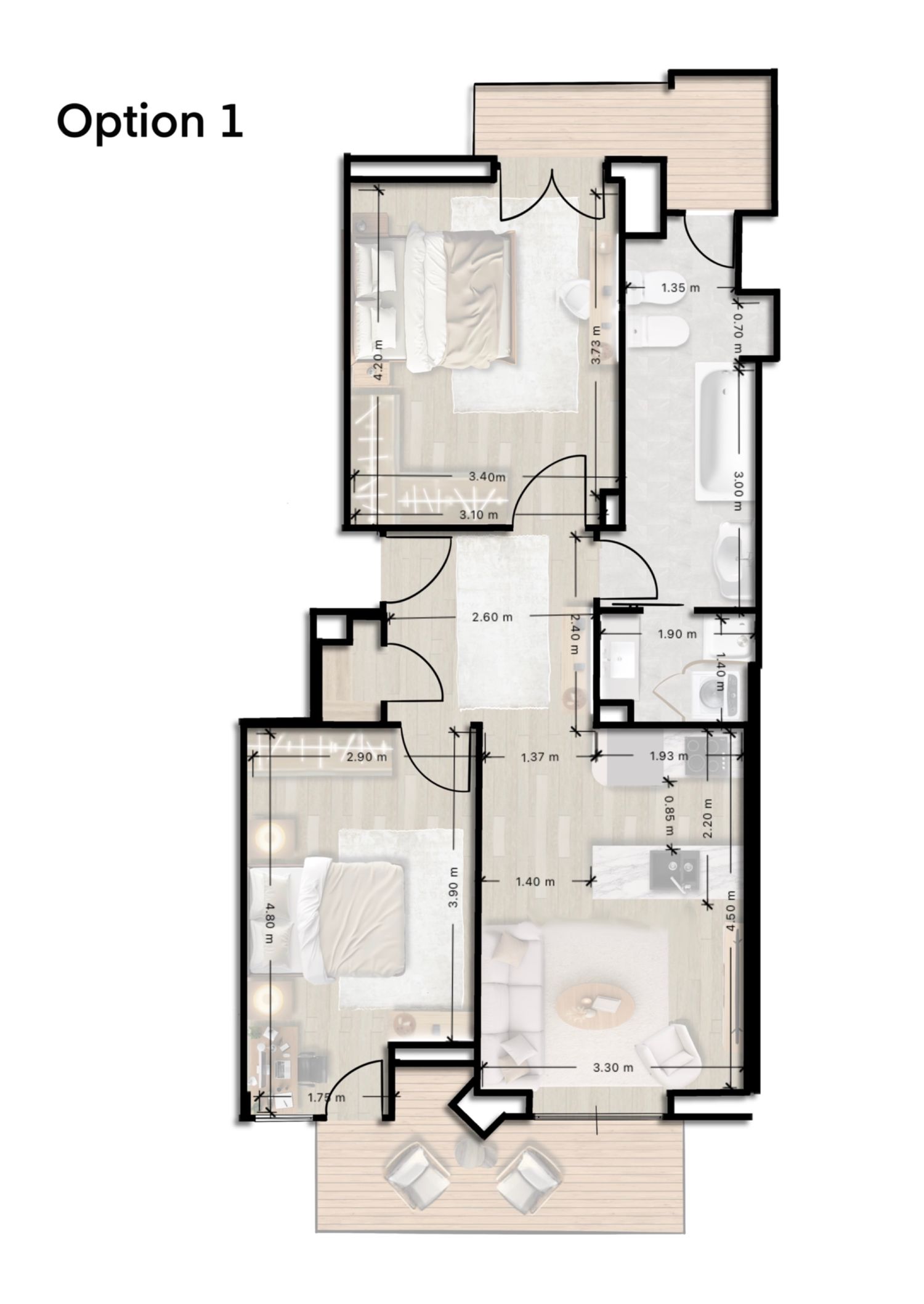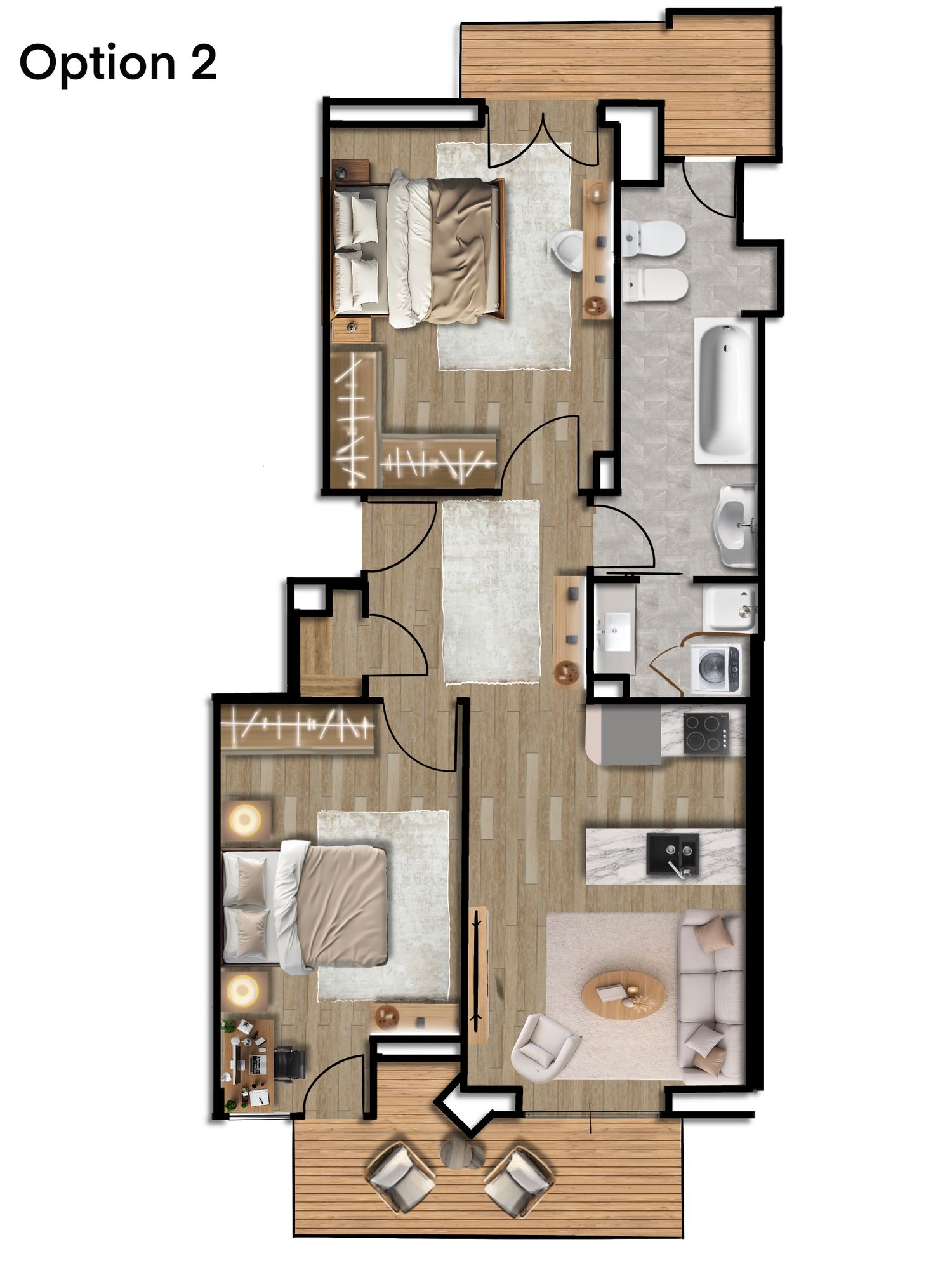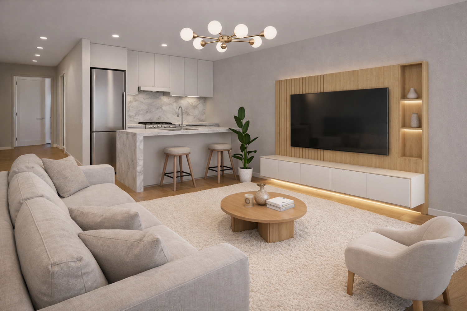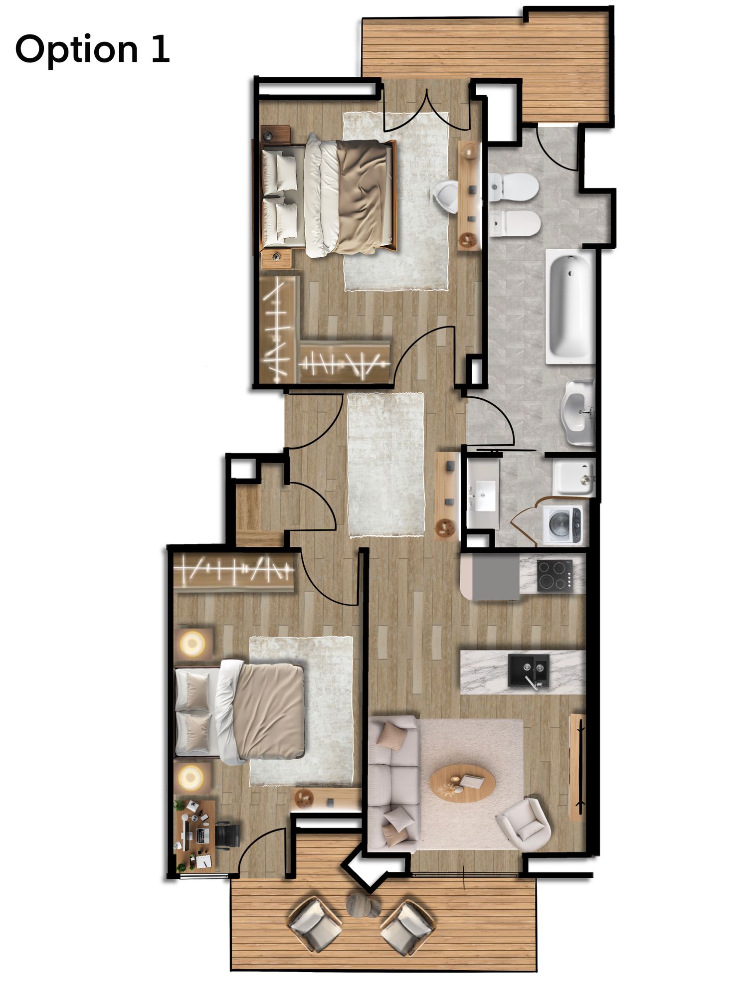 This proposal focuses on maximizing space efficiency, improving circulation, and creating a cohesive, modern living environment.