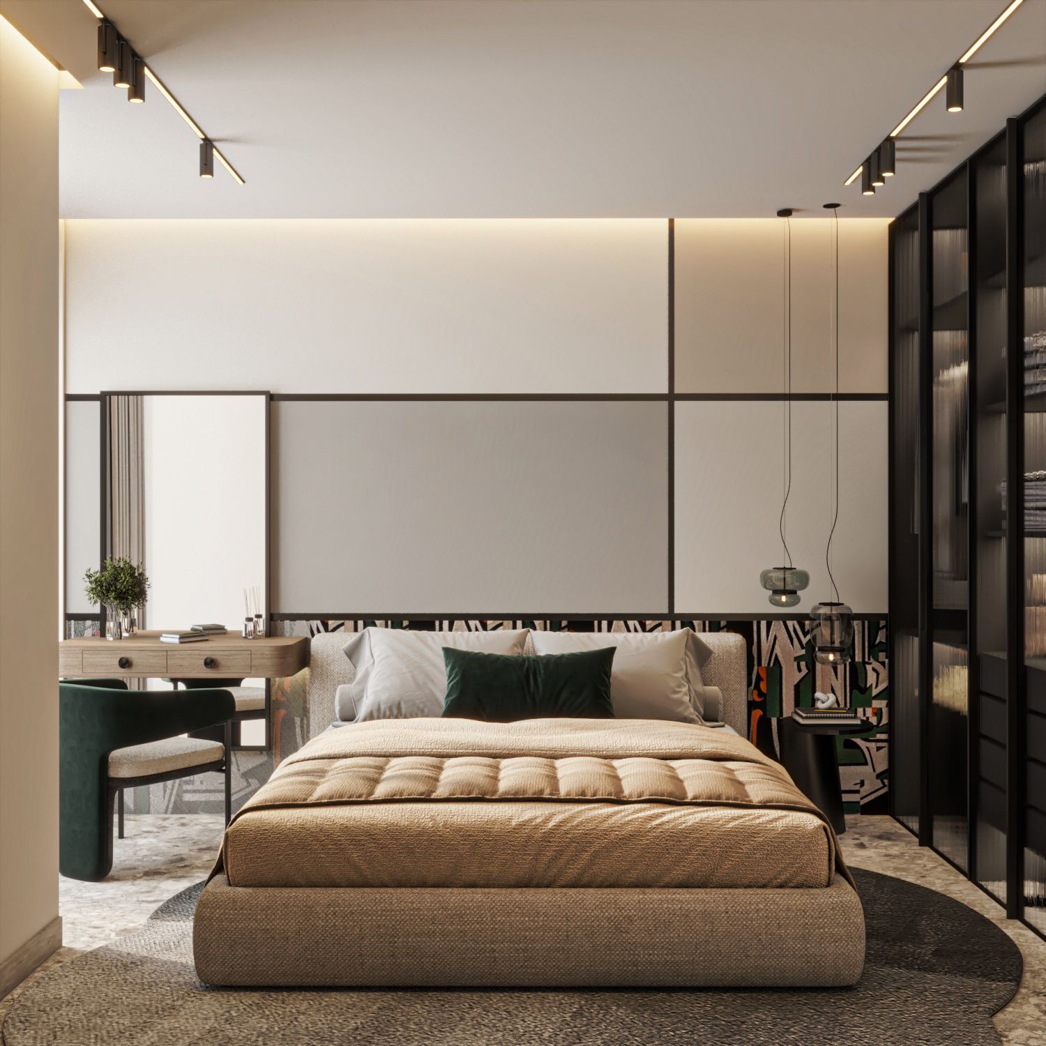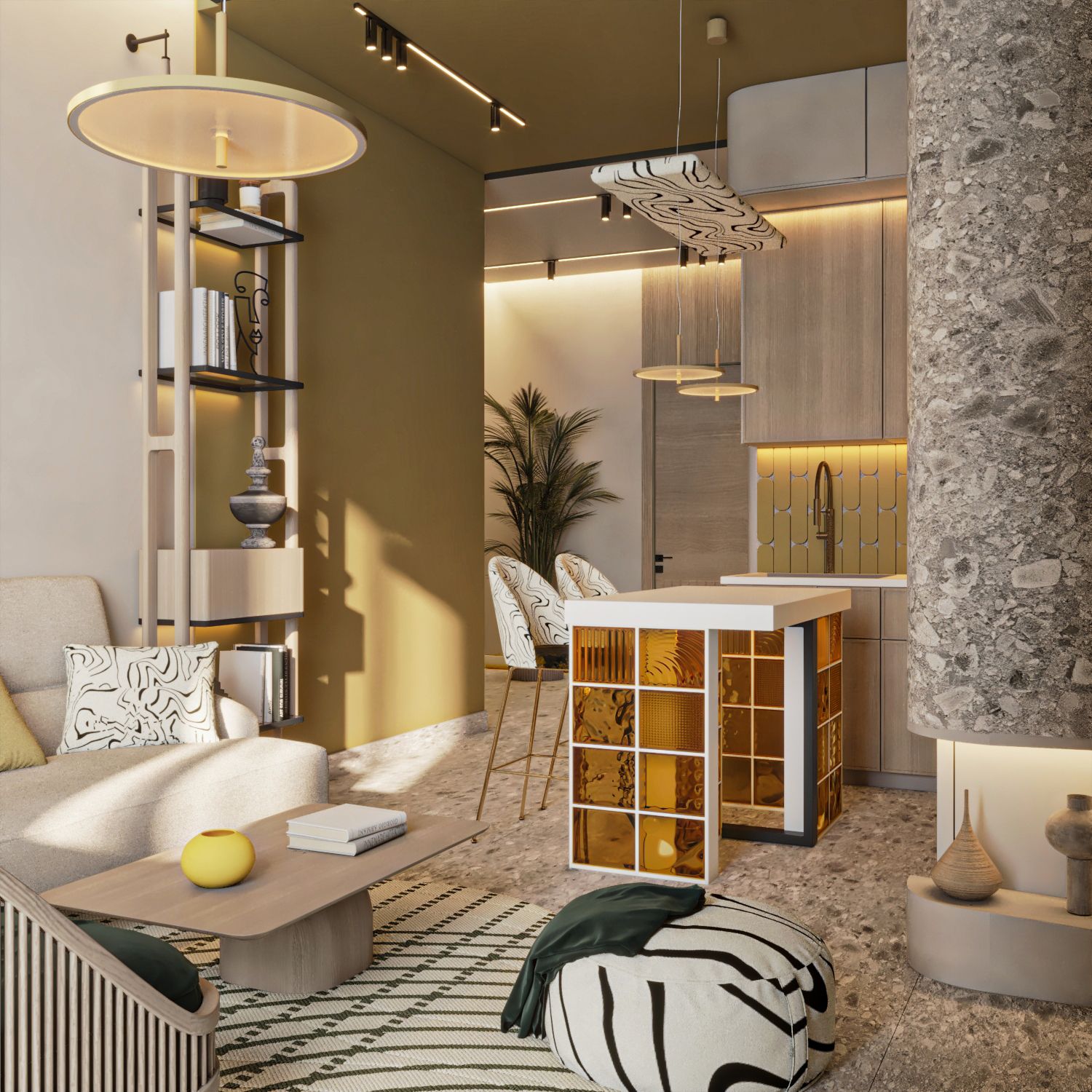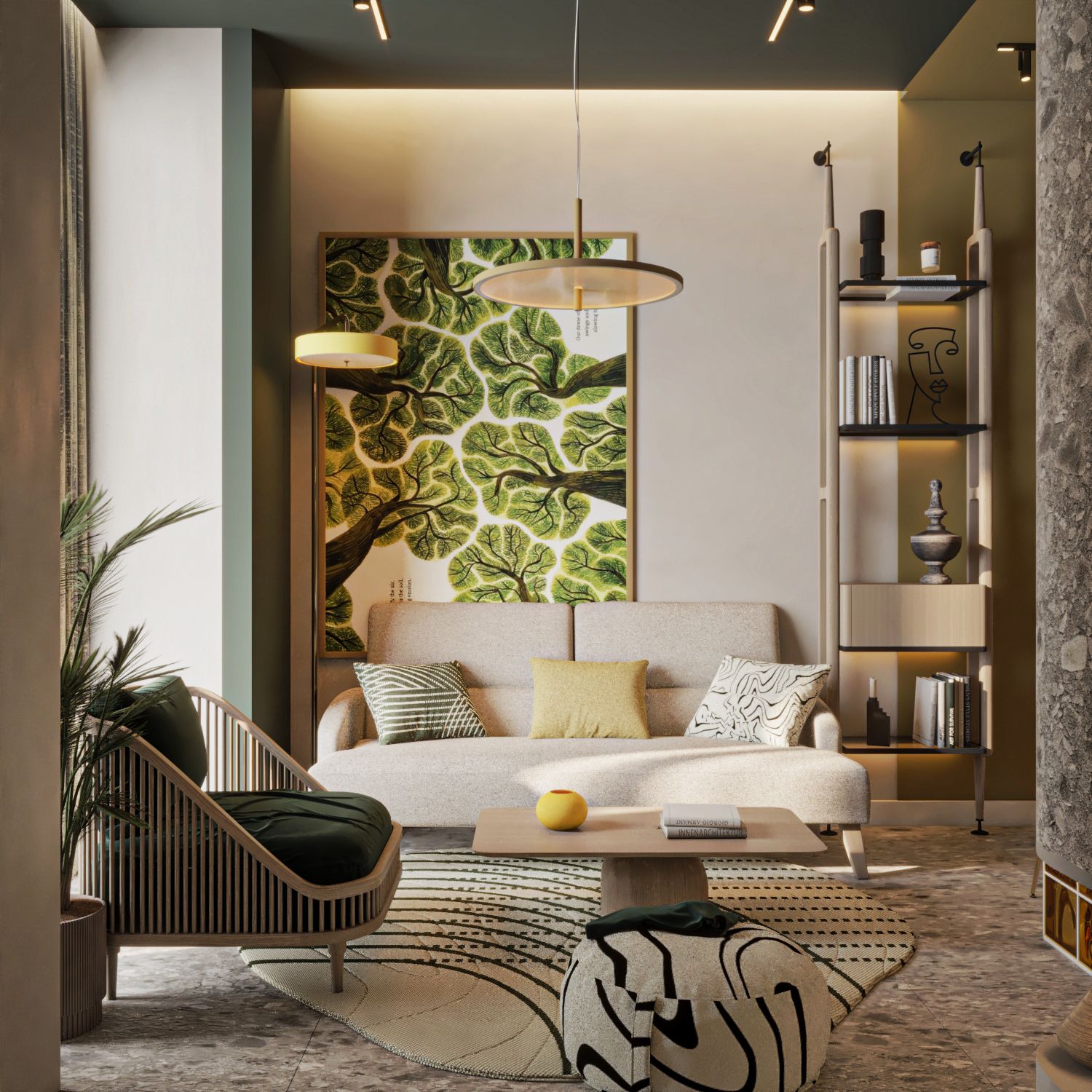 A warm modern style guides the overall atmosphere, with a harmonious color palette that creates a calm and welcoming flow.