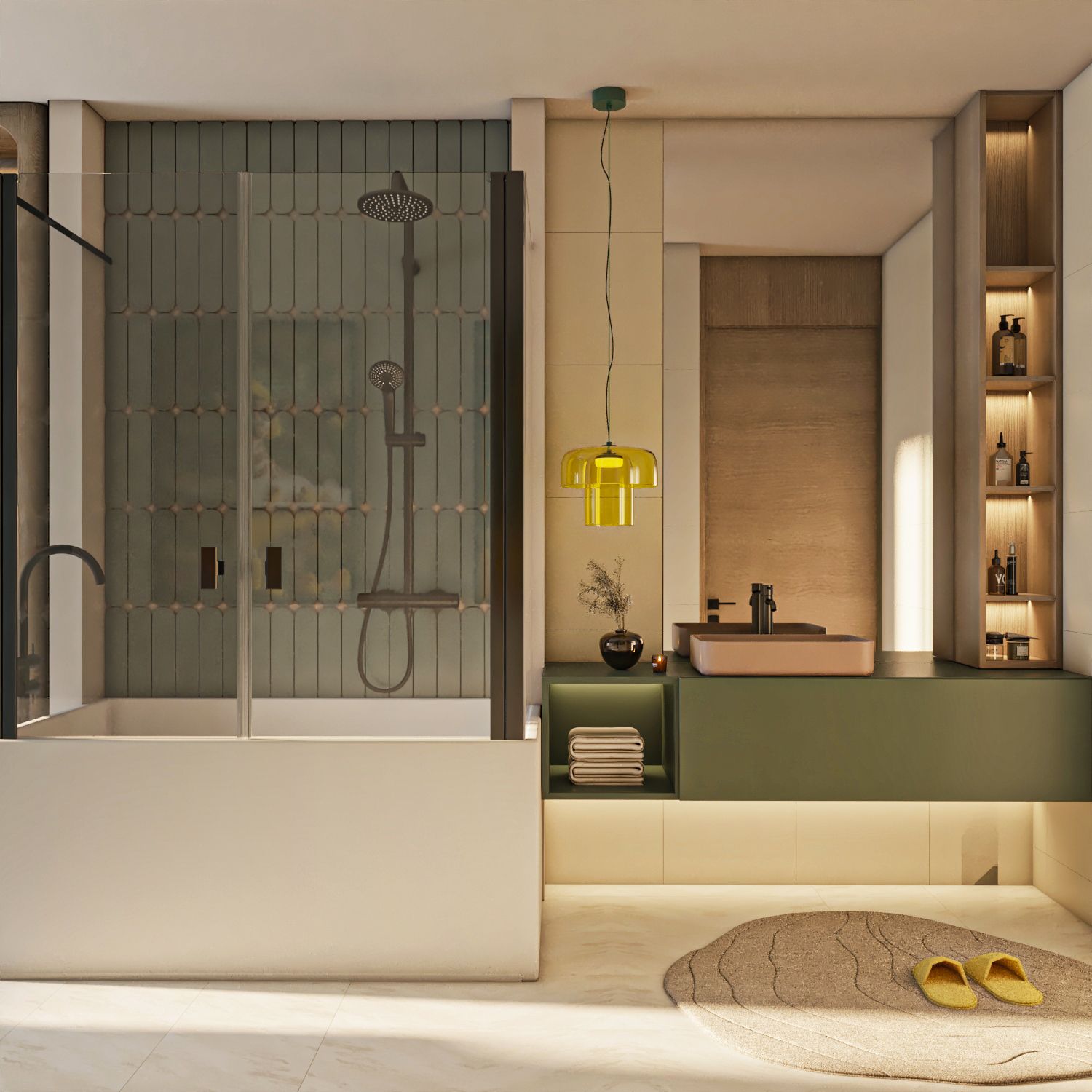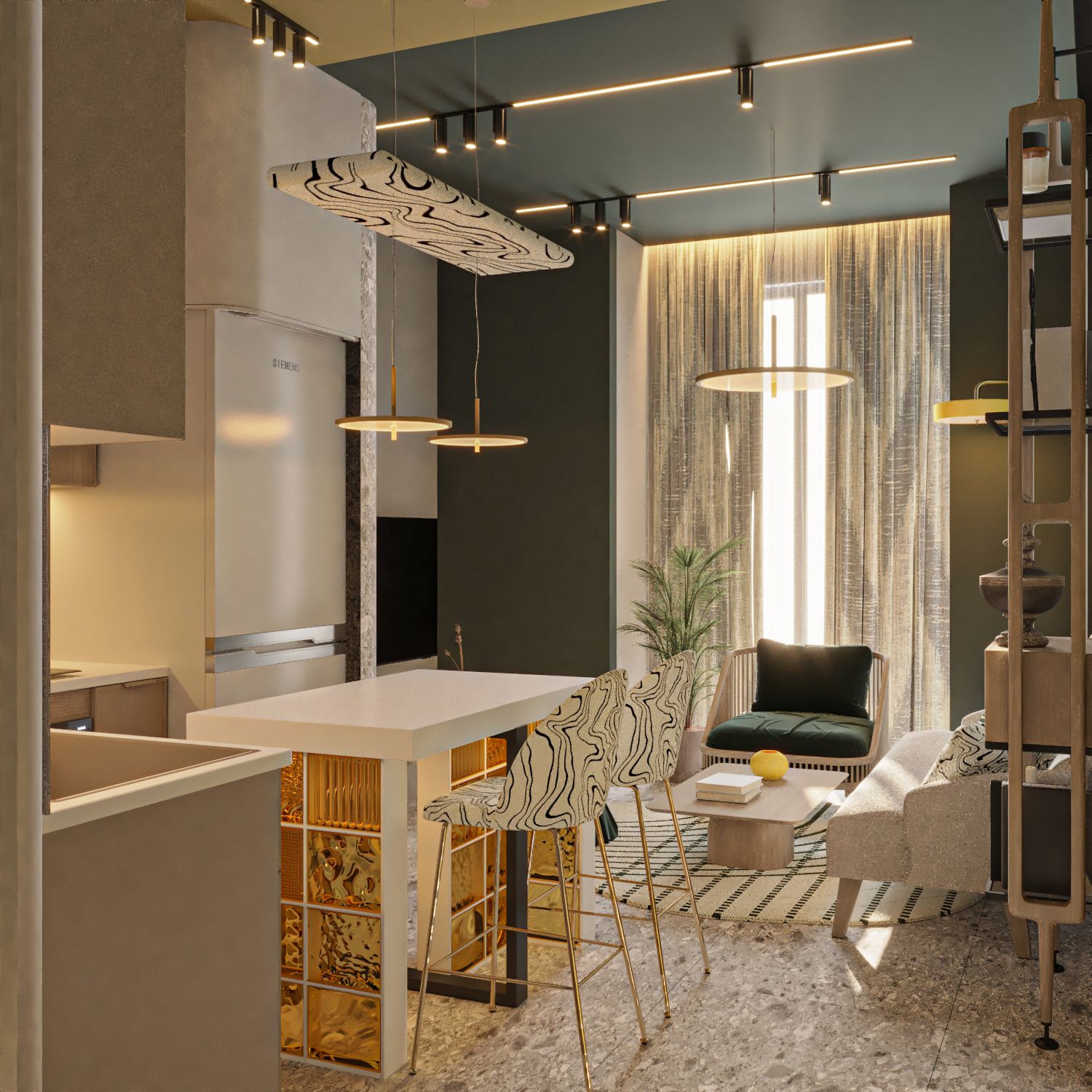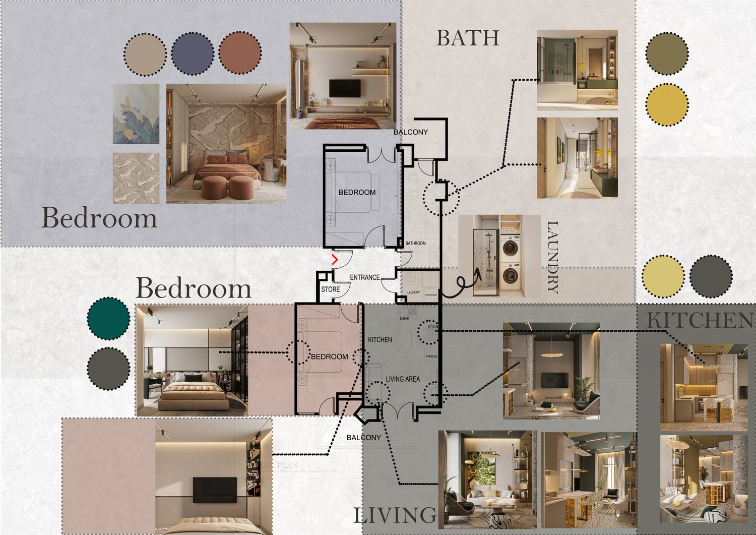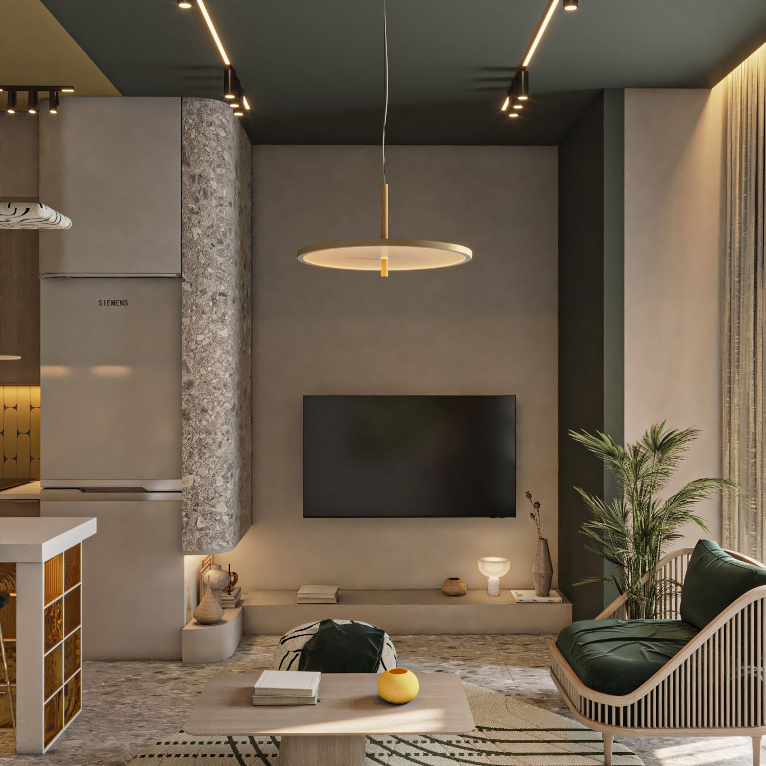 A warm modern style guides the overall atmosphere, with a harmonious color palette that creates a calm and welcoming flow.