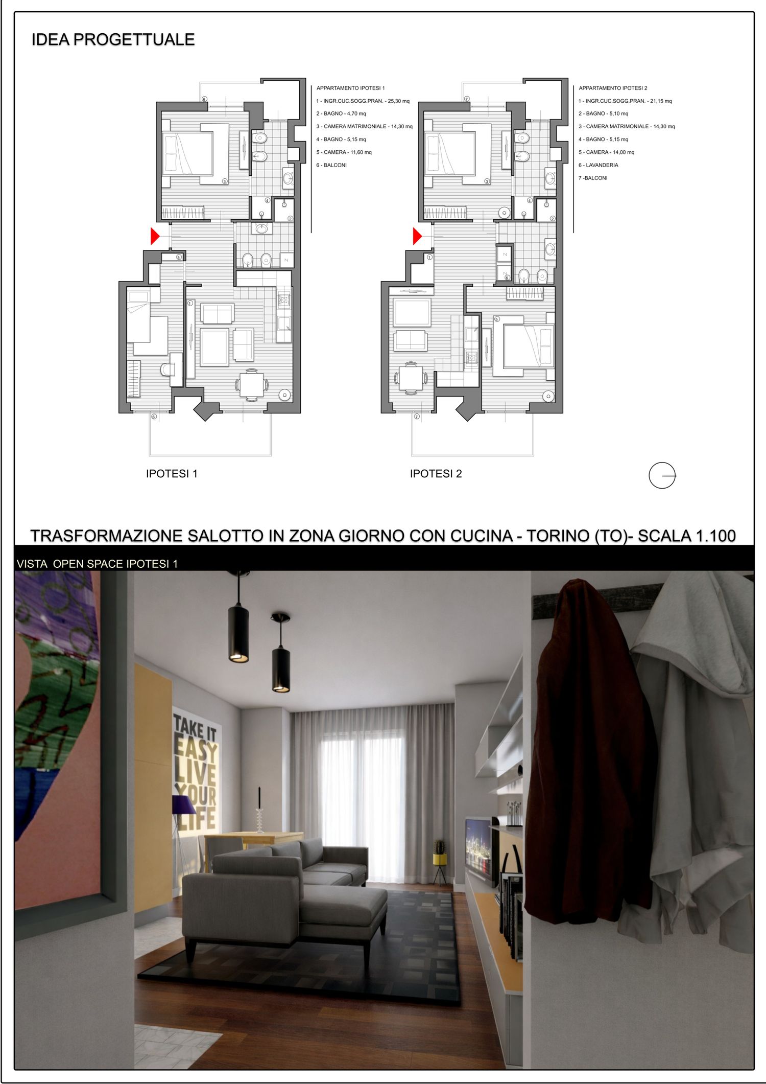 PROPOSTA: TRASFORMAZIONE SALOTTO IN ZONA GIORNO CON CUCINA - TORINO (TO)