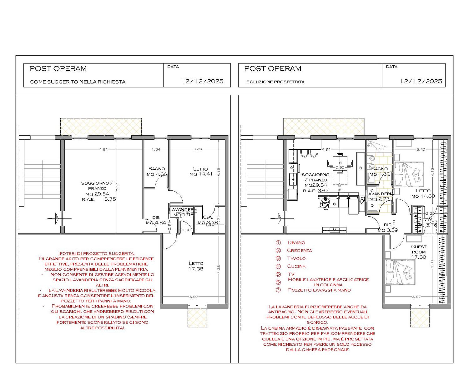 - la lavanderia risulterebbe molto piccola e angusta senza consentire l'inserimento del pozzetto per i panni a mano.