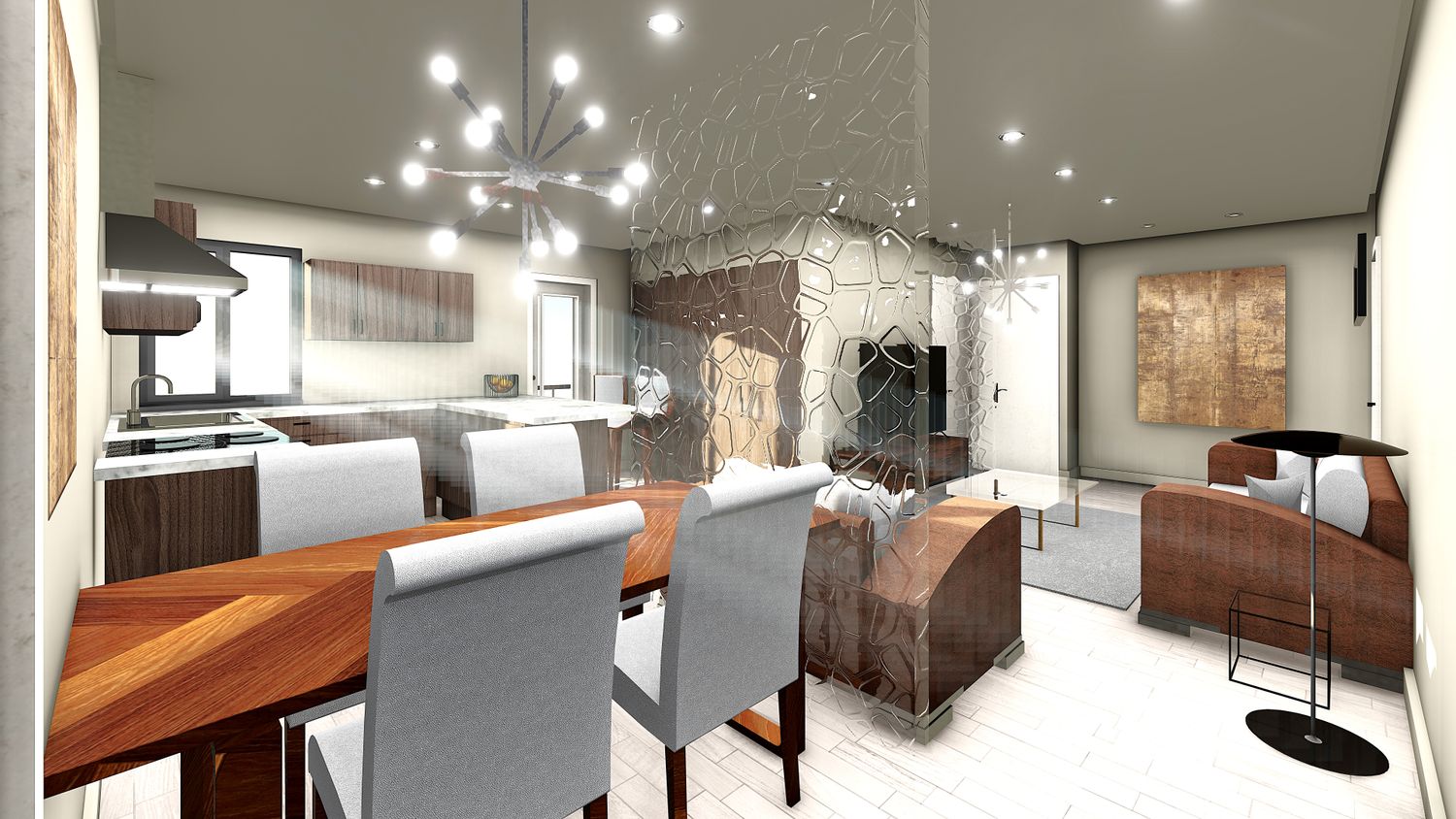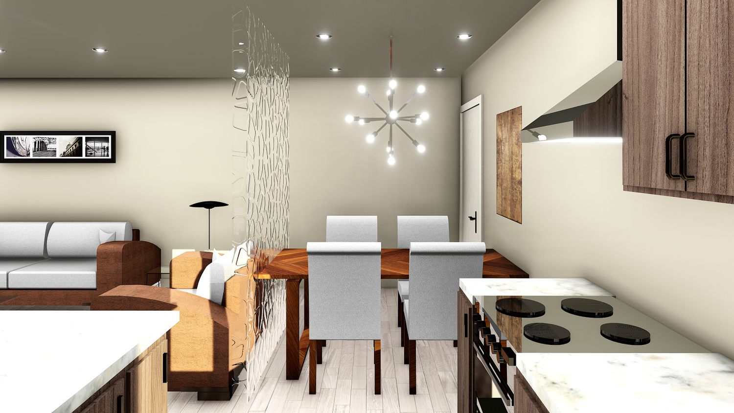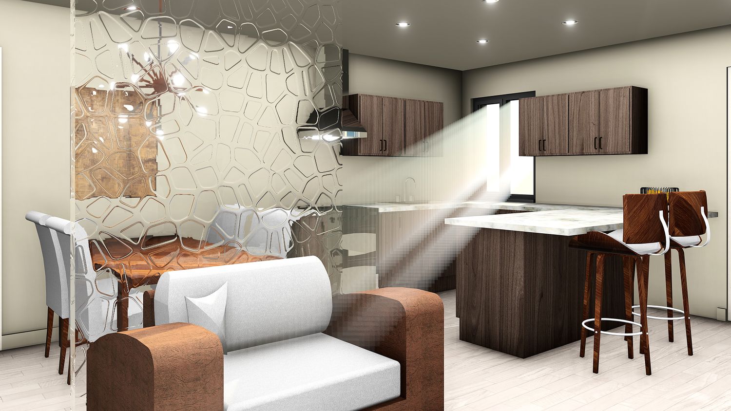 The proposed plan incorporates an open plan living with kitchen including peninsula, a laundry cabinet positioned along the wall of existing plumbing also ensuring no noise impact to the bedrooms. The kitchen sink and cooking range has been positioned along existing plumbing and gas services line.