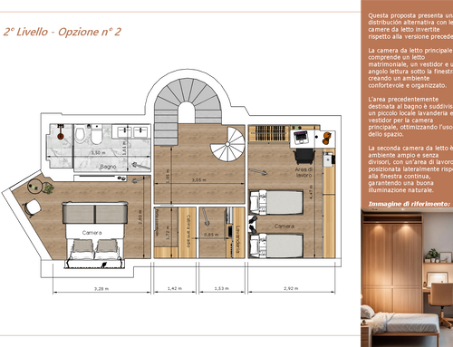 Una camera sarร quella padronale, la seconda al momento sarร un po' un jolly per ospiti/lavoro ed in un futuro non lontano lo spazio per i bambini.