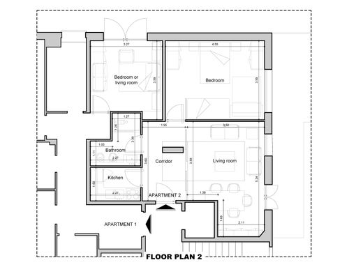 To our newly renovated house we would like to annex the adjacent apartment by acquiring a large room and renovating the remaining size creating a small apartment to rent for short periods.