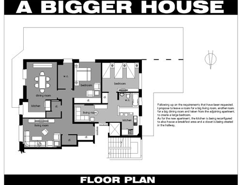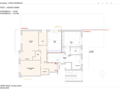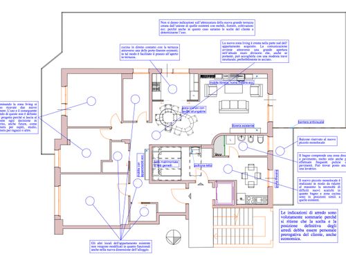 L'idea è di abbattere la parete che separa i due appartamenti e creare una stanza in più nell'appartamento dove viviamo, che può diventare una camera da letto o preferibilmente un nuovo salone sostituendo l'attuale salone che, più piccolo, diventerebbe una seconda camera da letto.