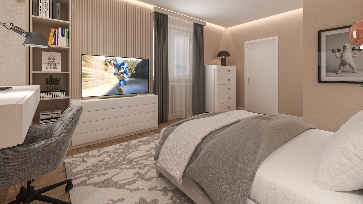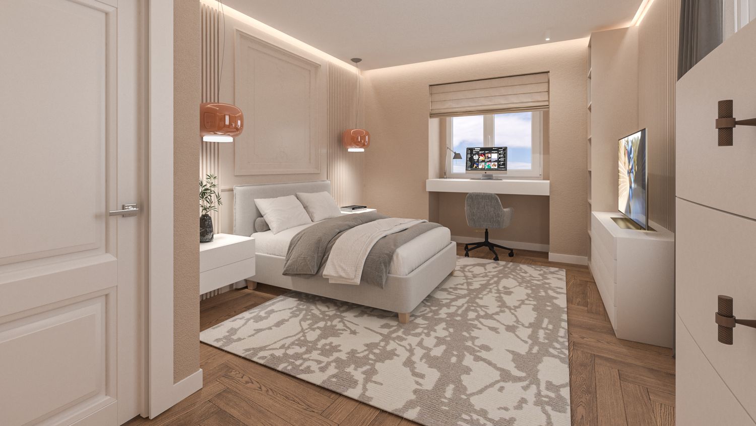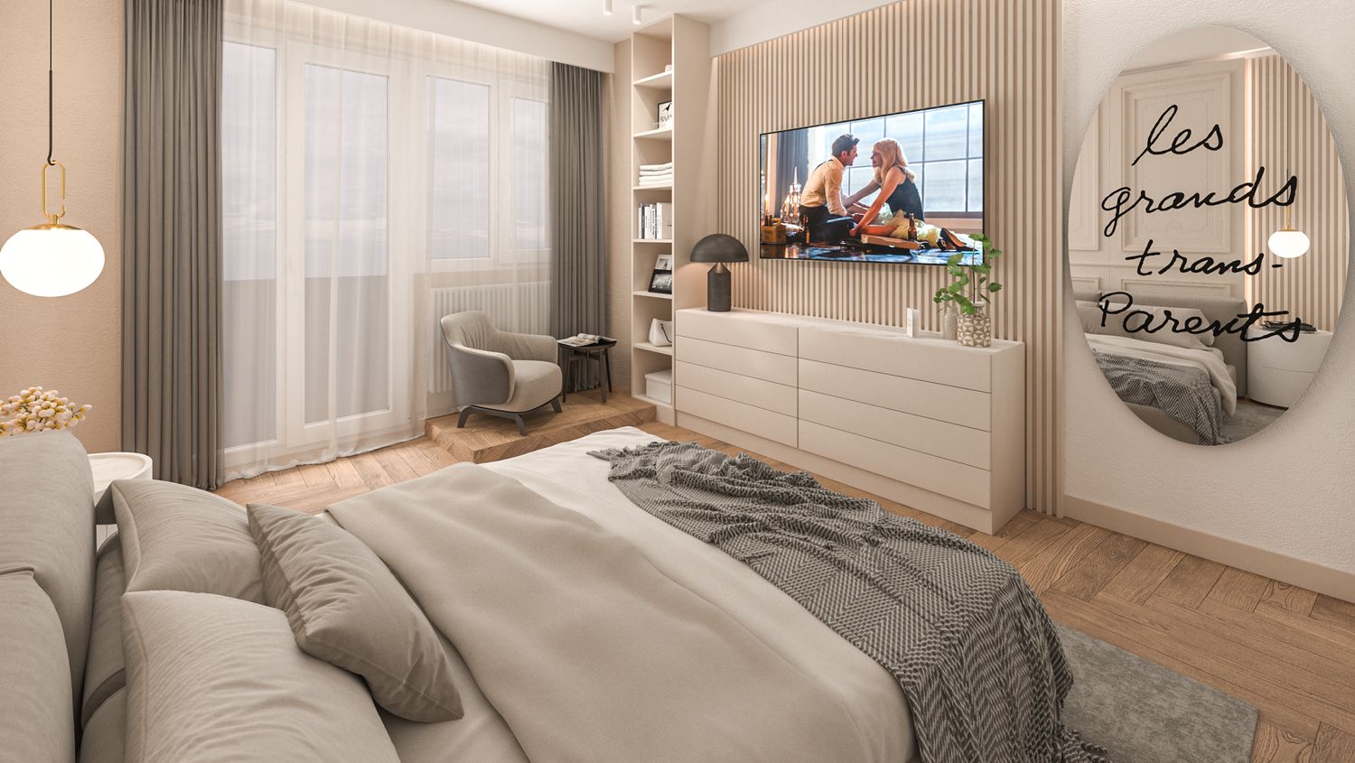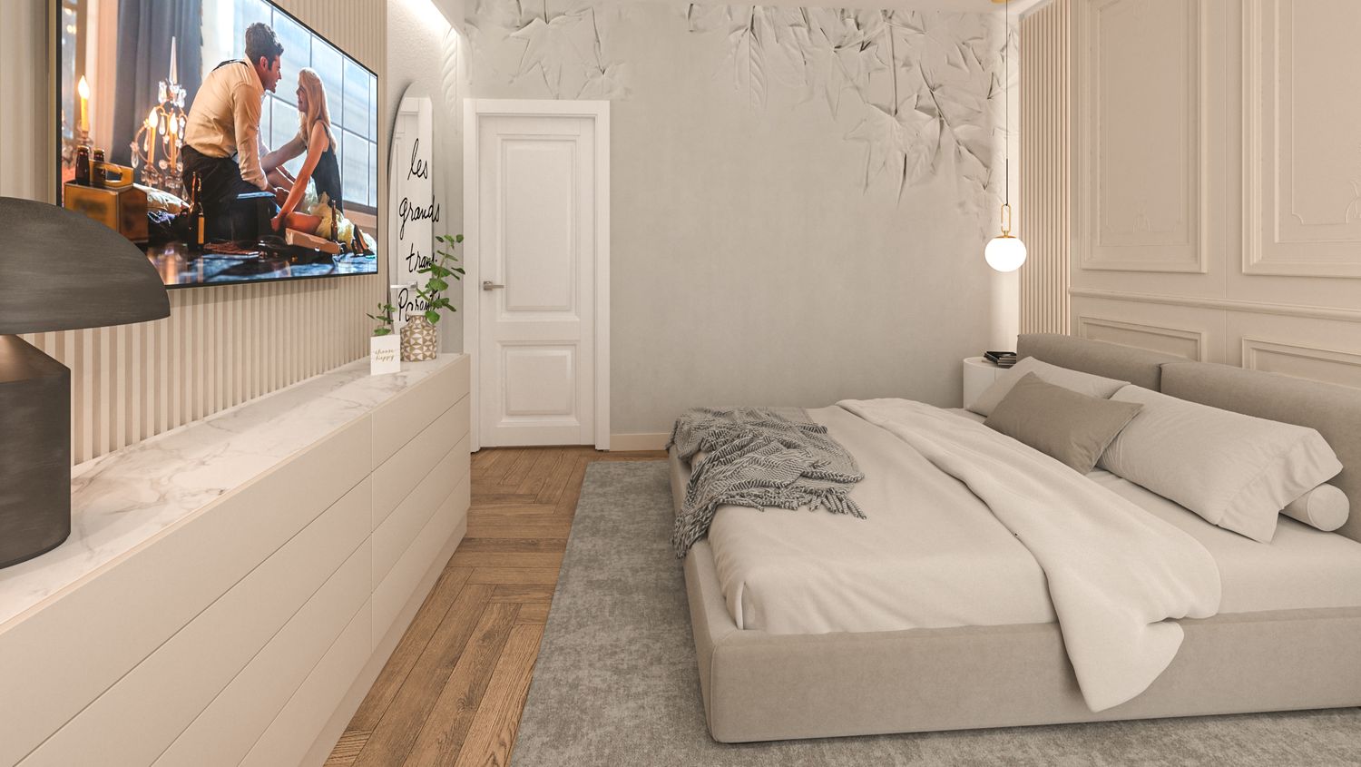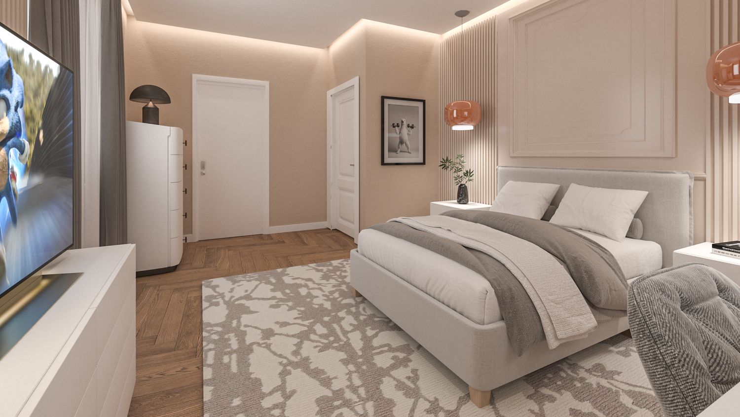 Il progetto d’interni interpreta un’eleganza classico-contemporanea attraverso una palette di toni caldi e neutri – beige, avorio e bianco RAL 9010 – che avvolgono l’appartamento in un’atmosfera accogliente e sofisticata. Senza modificare pavimenti o pareti, l’intervento si concentra sull’arredo e sulla decorazione: boiserie rettangolari, tessuti morbidi, linee pulite e volumi equilibrati definiscono ambienti armoniosi e luminosi. Nella zona giorno la lampada ad arco Castiglioni diventa protagonista accanto a sedute avvolgenti e a un tavolo dal piano materico in legno massello, mentre le porte in vetro bronzato scorrono per separare cucina e sala da pranzo ma senza perdere la profondità dell'ambiente. Le camere da letto combinano comfort e stile, con testiere pannellate e boiserie color avorio chiaro, luci soffuse e arredi su misura. L'ingresso si è arricchito di una consolle aerea, un armadio a scomparsa nella boiserie e un mobile contenitivo sottoscala di grande impatto. Un progetto che celebra la luce, la matericità e l’equilibrio, trasformando uno spazio nuovo in una casa dal carattere caldo, raffinato e senza tempo.