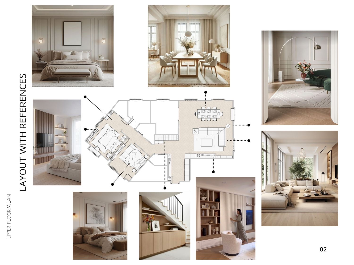 This project focuses on a modern and elegant design, featuring light and neutral colors that emphasize the height and natural lighting of the space. In the social area, a large L-shaped sofa embraces the living room, complemented by a custom-built cabinet that conceals the TV to maintain a refined aesthetic. The walls are enhanced with vertical moldings, adding scale and texture while preserving the overall elegance.