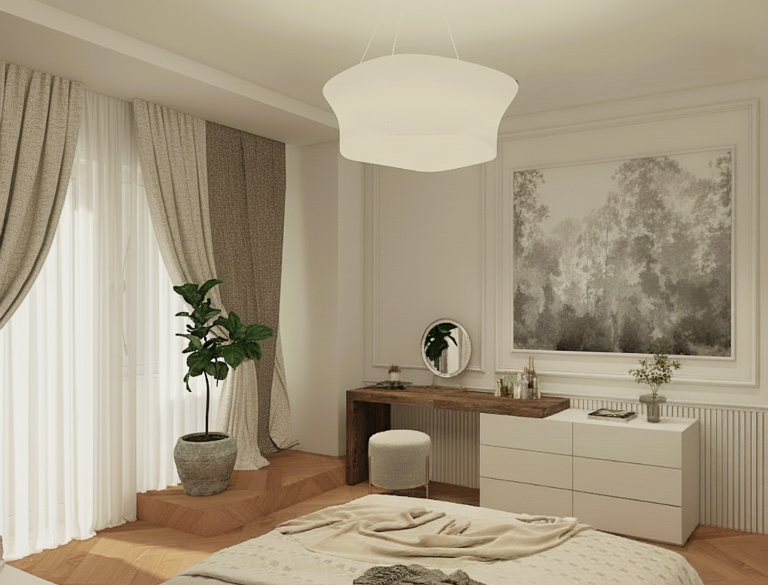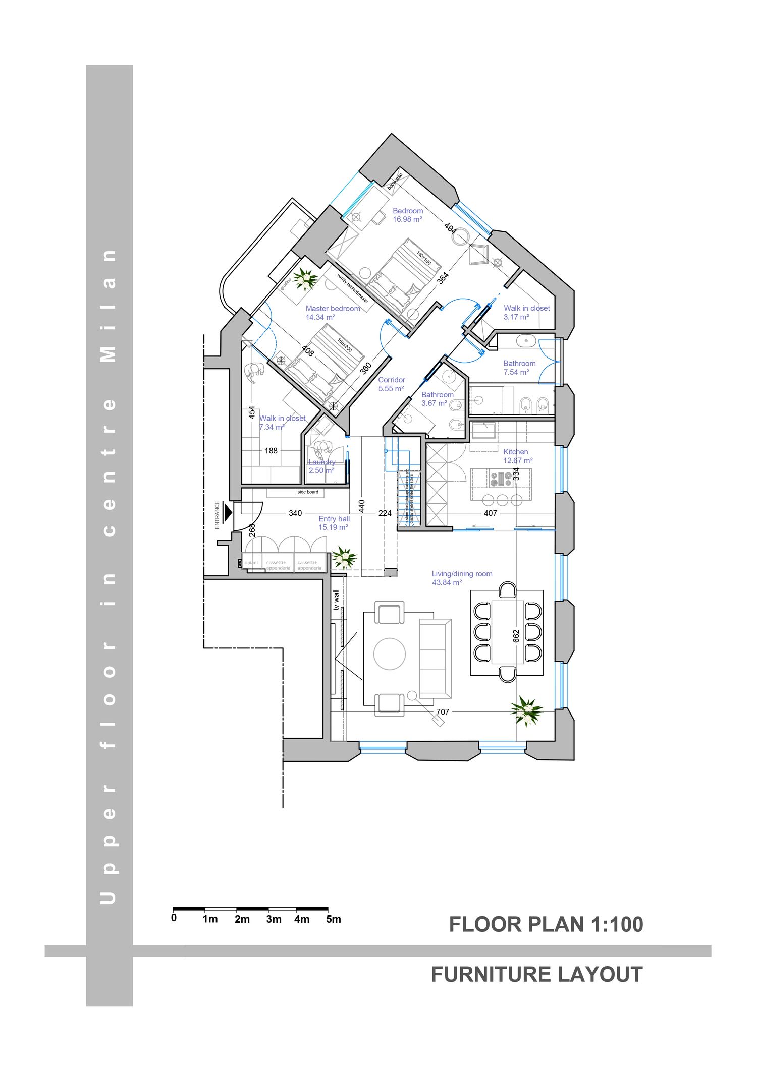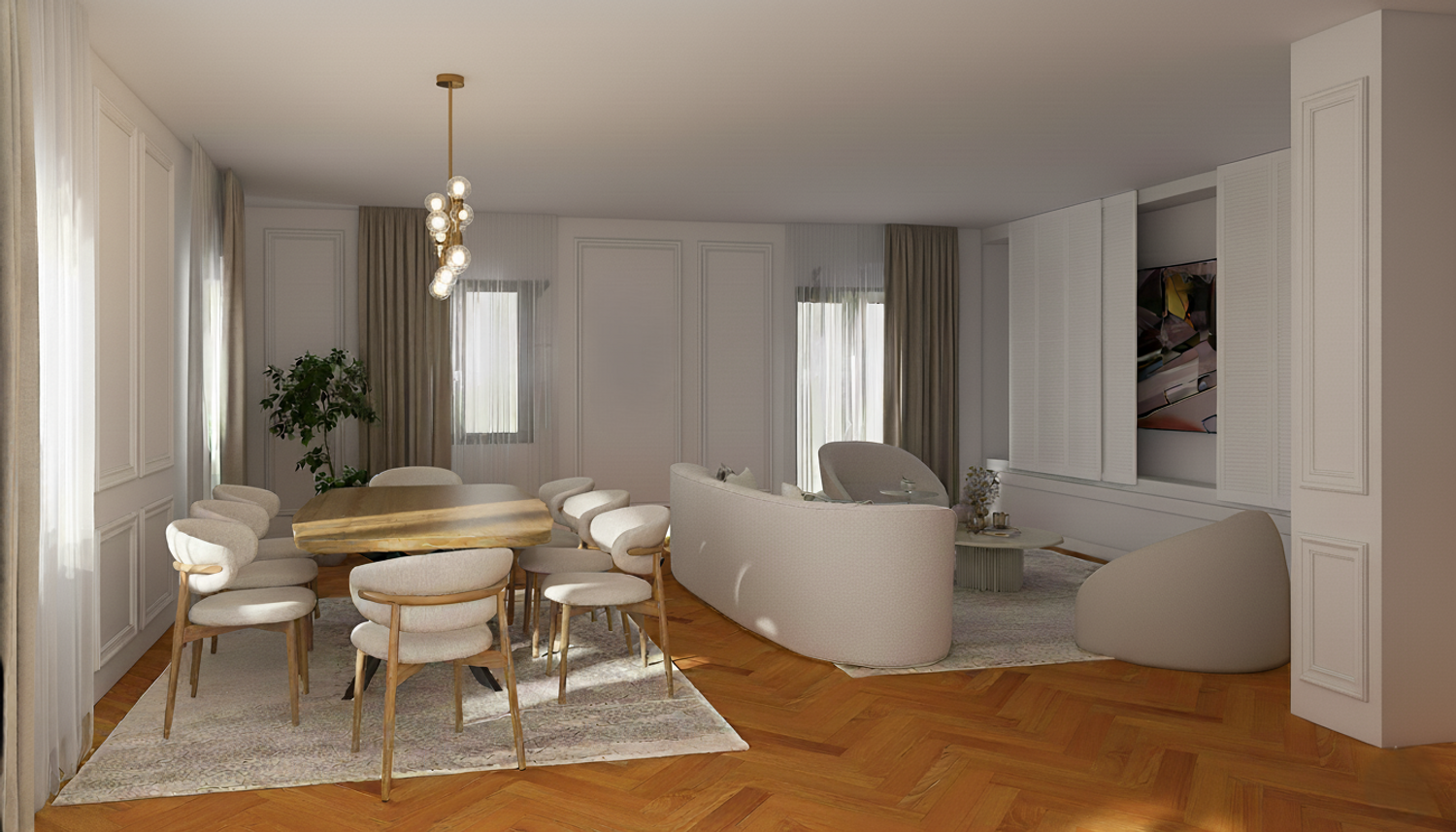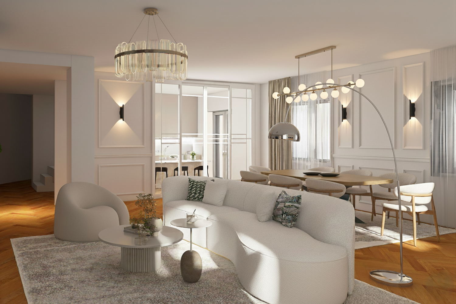 Following style references that you proposed, this solution offers a contemporary design which emphasizes all the advantages of this spacious apartment.