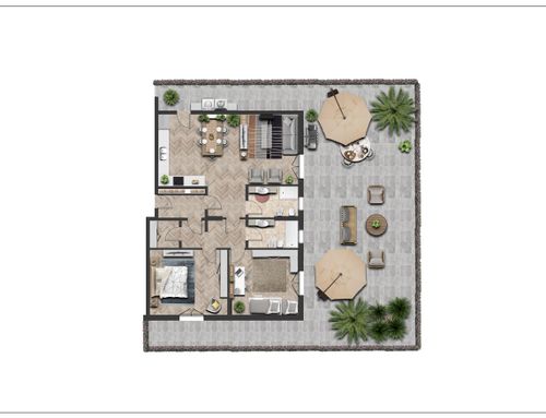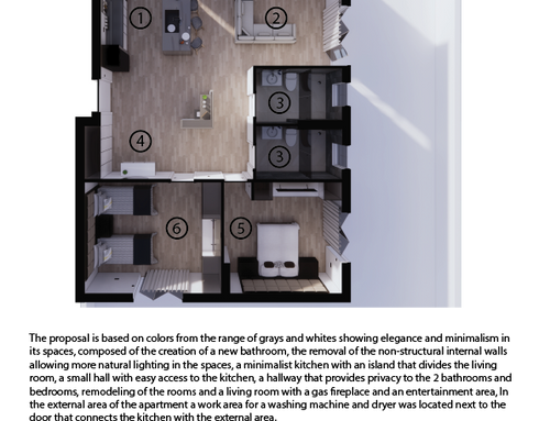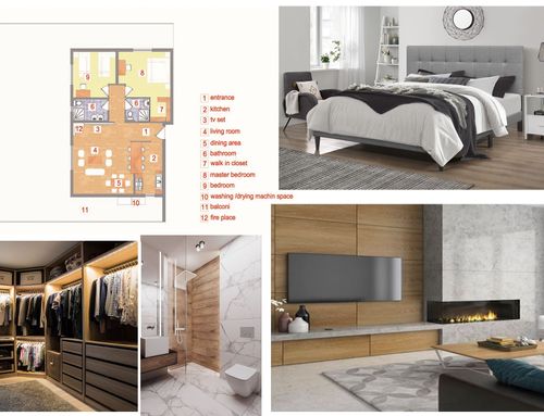 Our need is to create a second bathroom, possibly with a window, next to the existing one. Single room for the living area with an island to separate the rooms preferably without dividing them. Washing machine and dryer outside, next to the kitchen. We would like a fireplace in the living area. We love modern style, led lighting and spotlights.