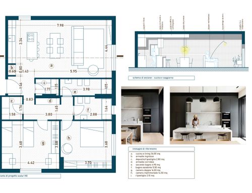 la nostra esigenza è di realizzare un secondo bagno , possibilmente con finestra, accanto a quello esistente. Unico ambiente per la zona giorno con un'isola per separare gli ambienti preferibilmente senza dividerli. Lavatrice ed asciugatrice all'esterno, accanto alla cucina. Ci piacerebbe un caminetto nella zona living. Amiamo lo stile moderno..illuminazione led e faretti