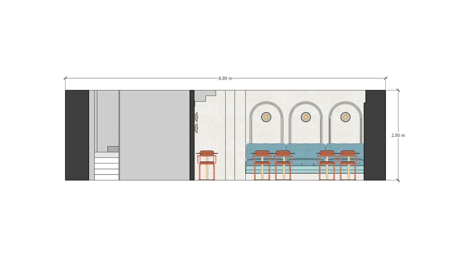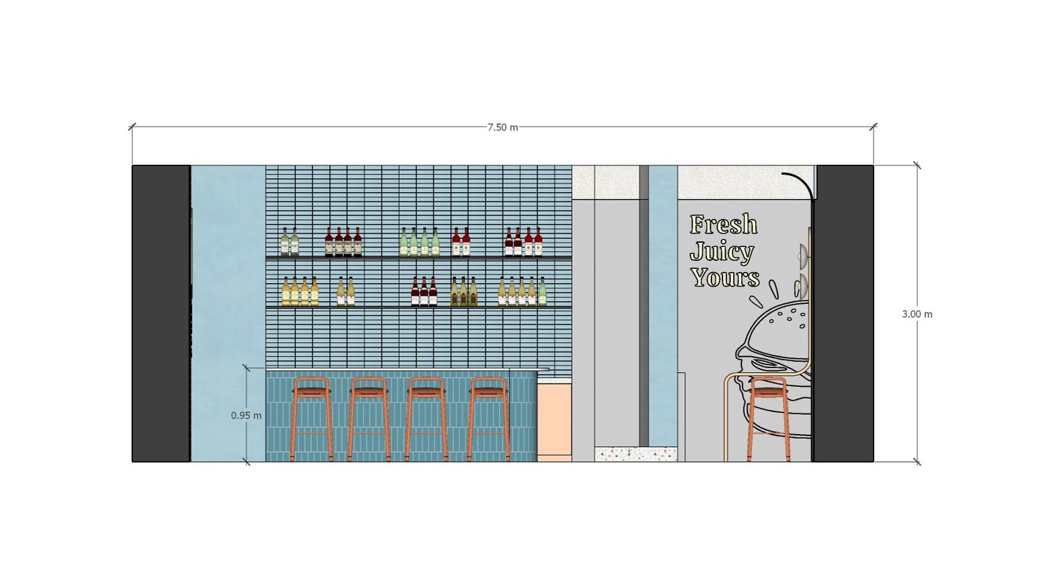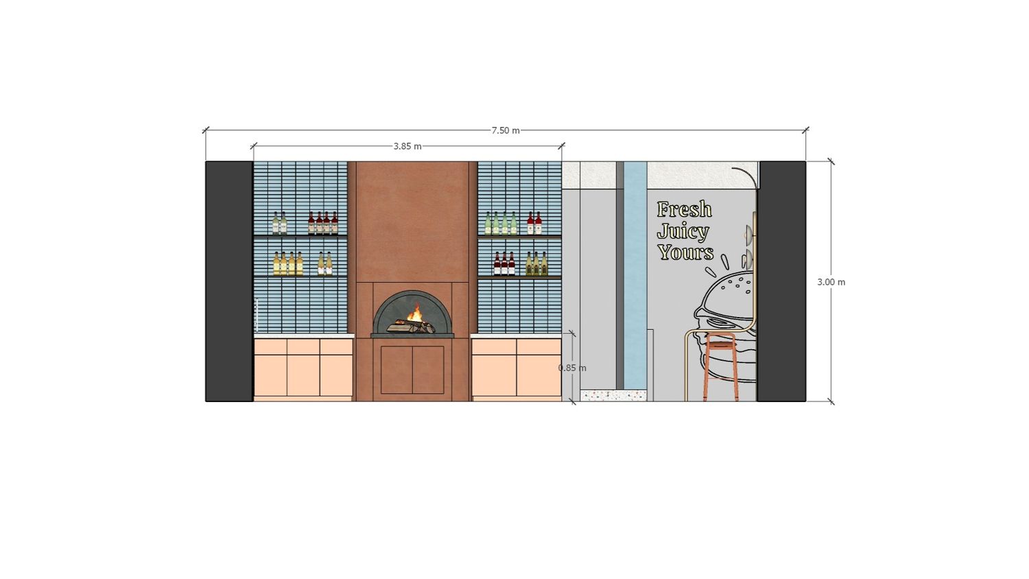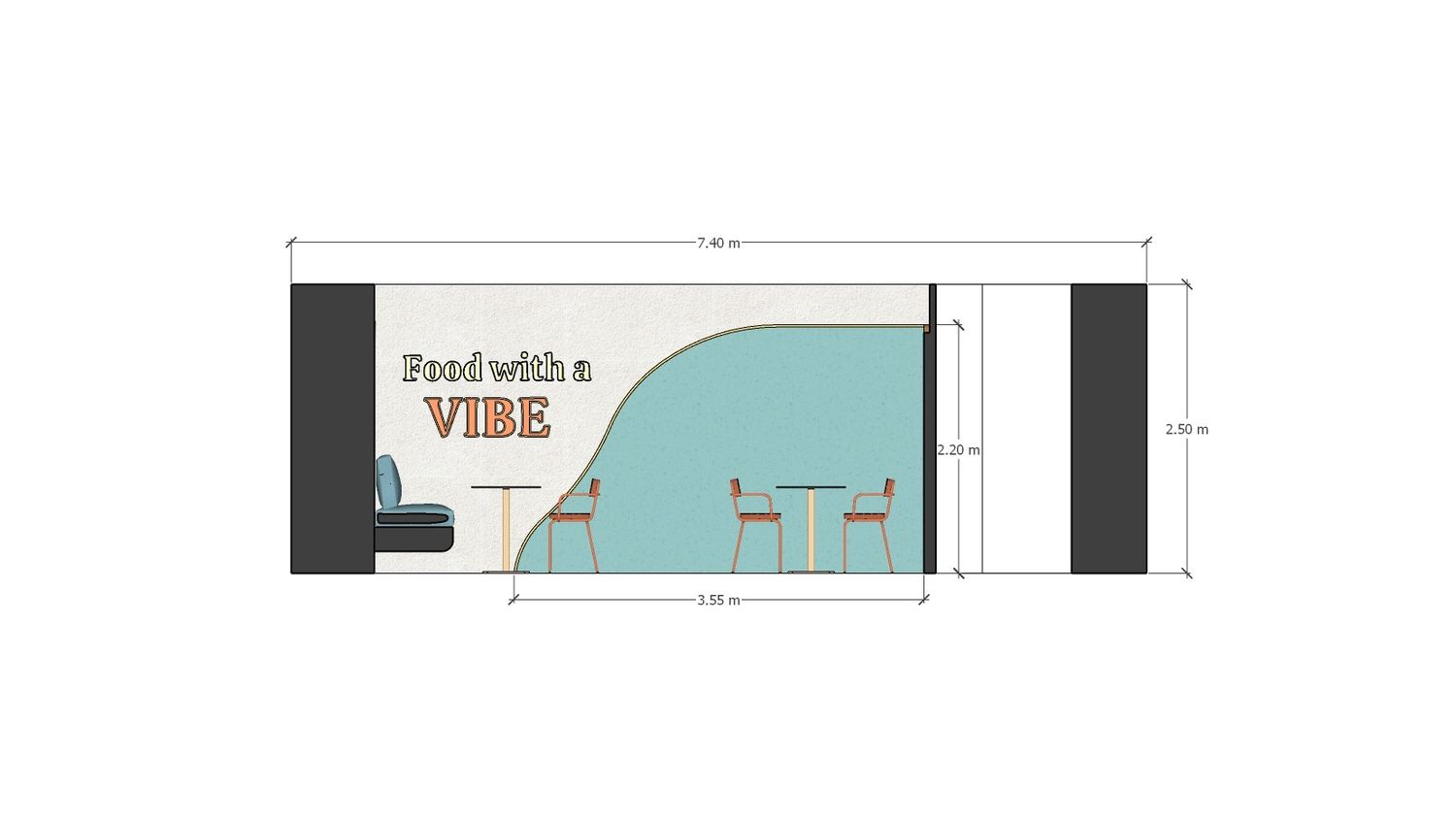 The redesign reinvents the restaurant into a modern, vibrant, and Instagrammable space that fuses Italian tradition with street food energy. Highlighting the signature Italian burger, the design features sleek finishes, dynamic seating, and a bold decorative element as a visual anchor, creating a fresh, distinctive identity that appeals to a young audience.