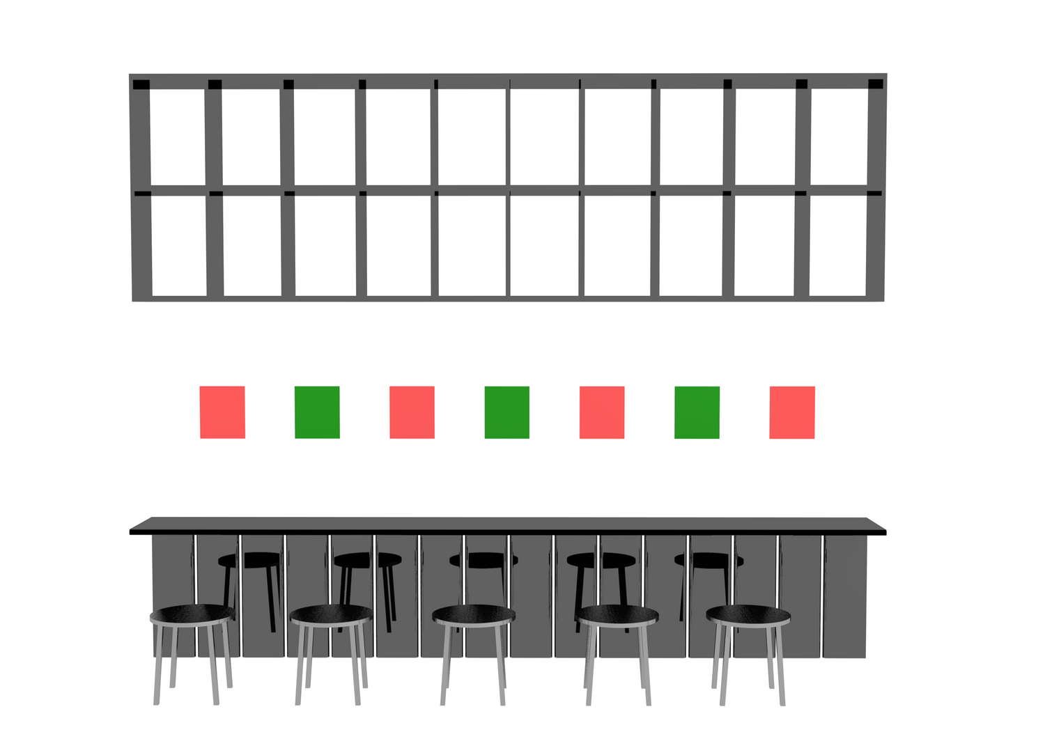 Zone semi-privative (pour différentes tailles de groupes : 1, 2 ou 4 personnes)