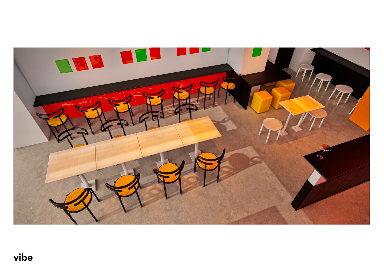 Zone restauration (style restaurant — pour séjour prolongé, groupes mangeant ensemble)