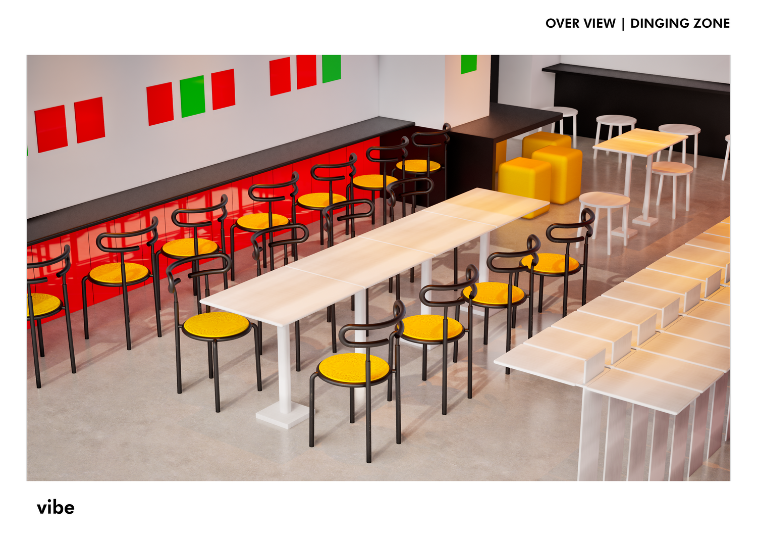 3. Dining Zone (restaurant style – for extended stays, groups eating together)