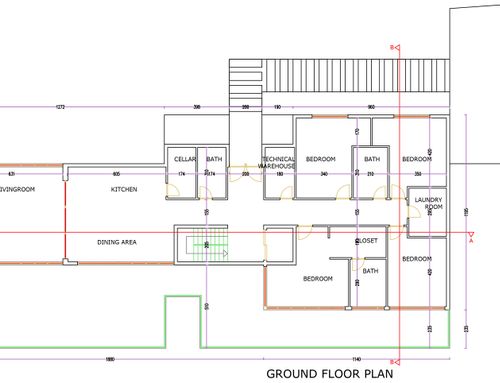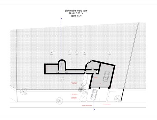 The villa will have to be developed on one level, with a modern style, simple colors and with an optimal orientation. In the living area, the large kitchen must be separated from the living room and lounge by a glass wall and have a view of the garden (pillars should not be placed in the living room). There must also be a bathroom (complete with sink, toilet and bidet), a fully equipped laundry room (tub, washing machine, dryer, ironing board), a pantry and a storage room for waste separation and cleaning tools. In the sleeping area there must be: n. 3 rooms for girls of 14-20 square meters each, accessible through a corridor in which there must also be a bathroom complete with two sinks, bathtub, large shower flush with the floor, toilet and bidet; n. 1 double bedroom with private bathroom (complete with two sinks, large shower, toilet and bidet) and walk-in closet. There must also be a guest room complete with bathroom and a study, conceivable at a lower altitude than the rest of the aforementioned rooms. For cars, a covered parking must be provided on the level of Via Aldo Moro, and a garage accessible from Via G. Caria, which can also be positioned flush with the road.