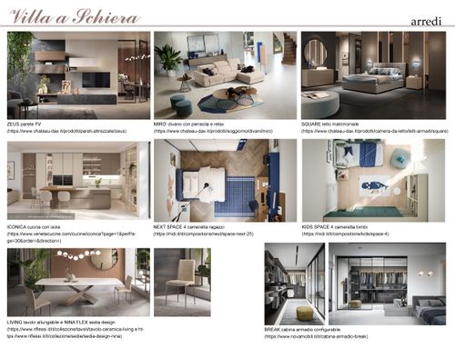 •	Zona giorno, camere e camerette: MORASSUTTI, MOBILSTELLA, CORAZZIN, GOLF