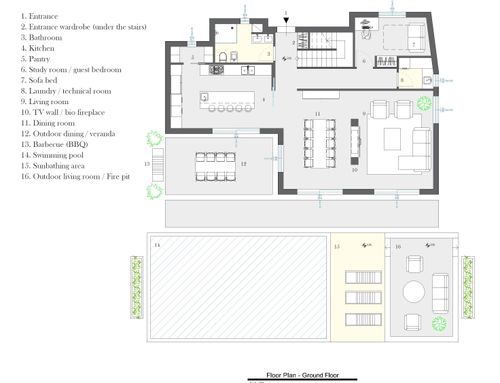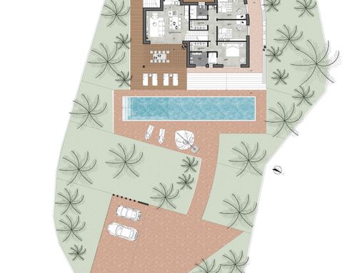 Demolition and reconstruction of a country ruin, need to have 2 bedrooms for children with single or shared bathroom, master bedroom with bathroom and walk-in closet, open kitchen separated from dining and living, laundry and verandas.