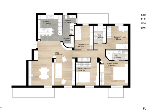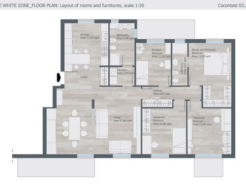 Sogniamo una casa luminosa, ariosa, allegra, con spazi ampi e funzionali alle esigenze individuali e allo stare insieme: siamo una famiglia con tre figli di 13 (Federico), 9 (Giovanni) e 4 (Emma)