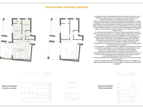 vorremmo arredare la zona giorno del nostro nuovo appartamento. È un open space di circa 37mq con soffitto a travatura bianca a vista molto alta (min. 291 - max 474). Vorremmo una cucina di medie dimensioni con isola o penisola (2/3 sgabelli), tavolo allungabile (almeno fino a 2m) e zona soggiorno con divano almeno 3 posti (attacchi TV predisposti nella parete confinante con la camera matrimoniale). Vorremmo una stanza ben proporzionata, che ci permetta anche di organizzare cene o serate con amici. L’immobile è nuovo e finito con pavimento in gres porcellanato effetto legno color grigio chiaro e riscaldamento a pavimento (quindi no scavi a terra). La trave superiore centrale verrà coperta con un cartongesso bianco, l’illumazione predisposta è con applique. Ci piacciono colori come bianco, nero e grigio in stile moderno e/o nordico con elementi in legno. Grazie!
