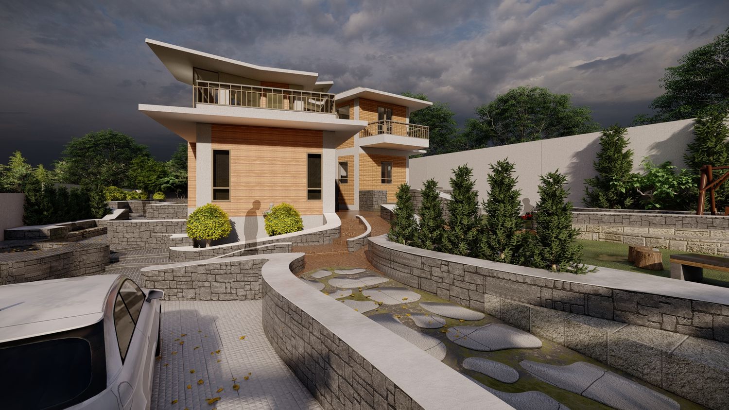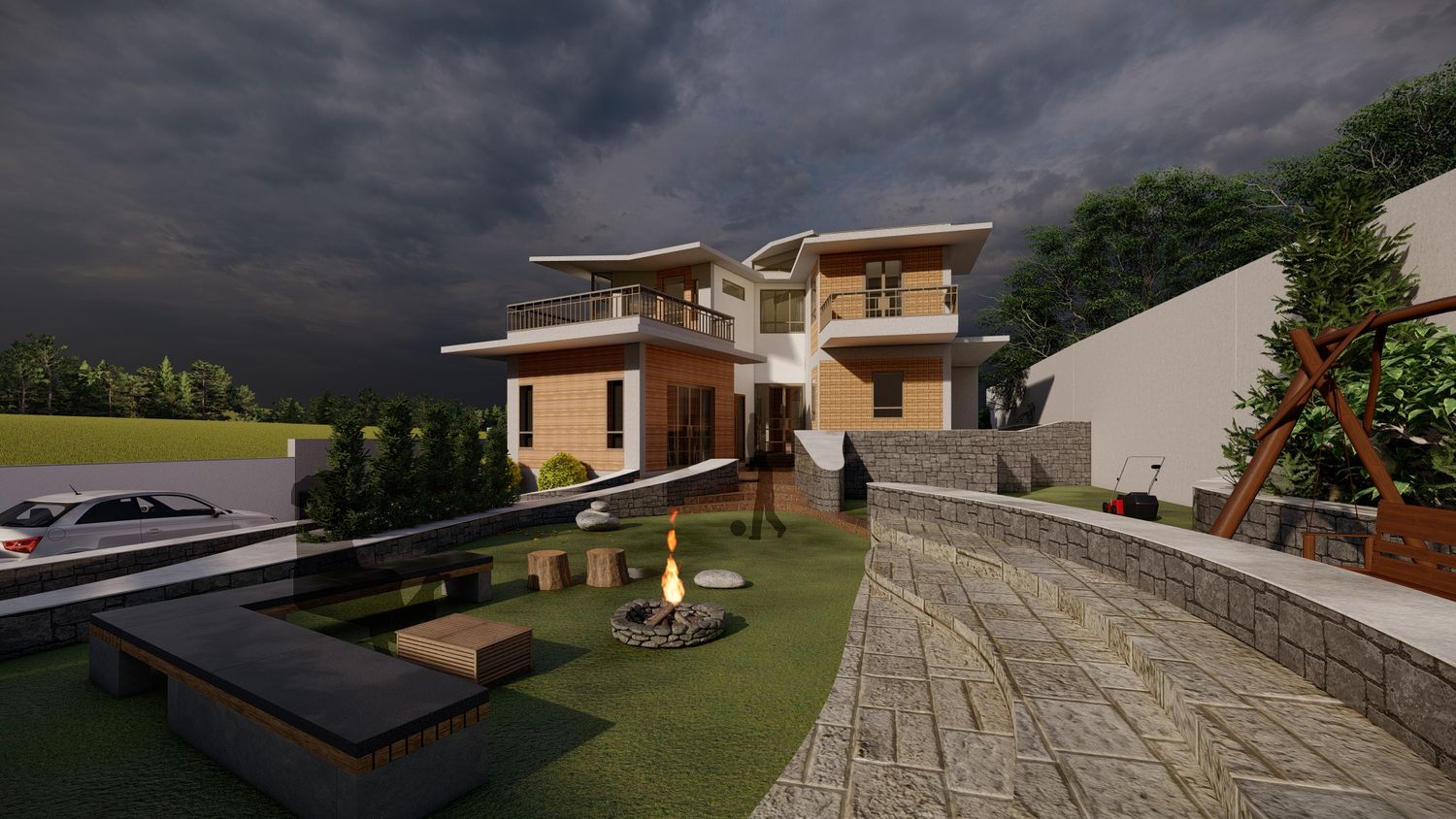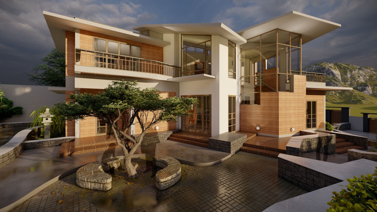 Done this residence with climatic condition and also with clients satisfaction. The construction were rammed earth structure. My main quote in this project were there are 360 degree why to stick in one